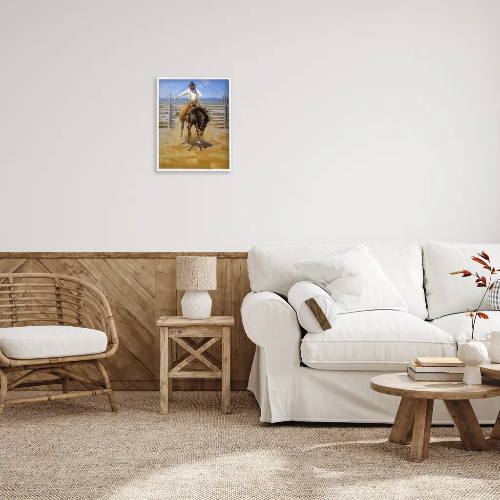 Add dimension to any room with our textured Framed Giclee Artwork. Our framed artwork is securely mounted into a 1.5-inch thick wood grain frame and ready to hang. Frames are available in three alluring styles: black, gray farmhouse and white. In addition, you should check out our oversized options if you want a statement piece. Stupell Wall Art is made in the USA.Features: Dimensions: 11 x 1.5 x 14 FramedFramed Giclee Products are available in the sizes 11"x14", 16"x20" or 24"x30". All Framed Giclee Products have a 1.5" Depth. Wall Art is Ready to Hang with Hardware Free Hanging. No installation required. For Easy Set Up Lean or Layer Artwork on Shelf or Against Wall.Our giclée prints are carefully mounted on a durable MDF backing, and then perfectly finished in a 1.5 inch thick woodgrain frame. Mounted frame colors include black, gray farmhouse and white. Made In USA.Artwork Relates To: Equestrian, Rodeo, Country, Southwestern, Cowboy, Animal, Horse, FarmDesign by Jimmy Dyer