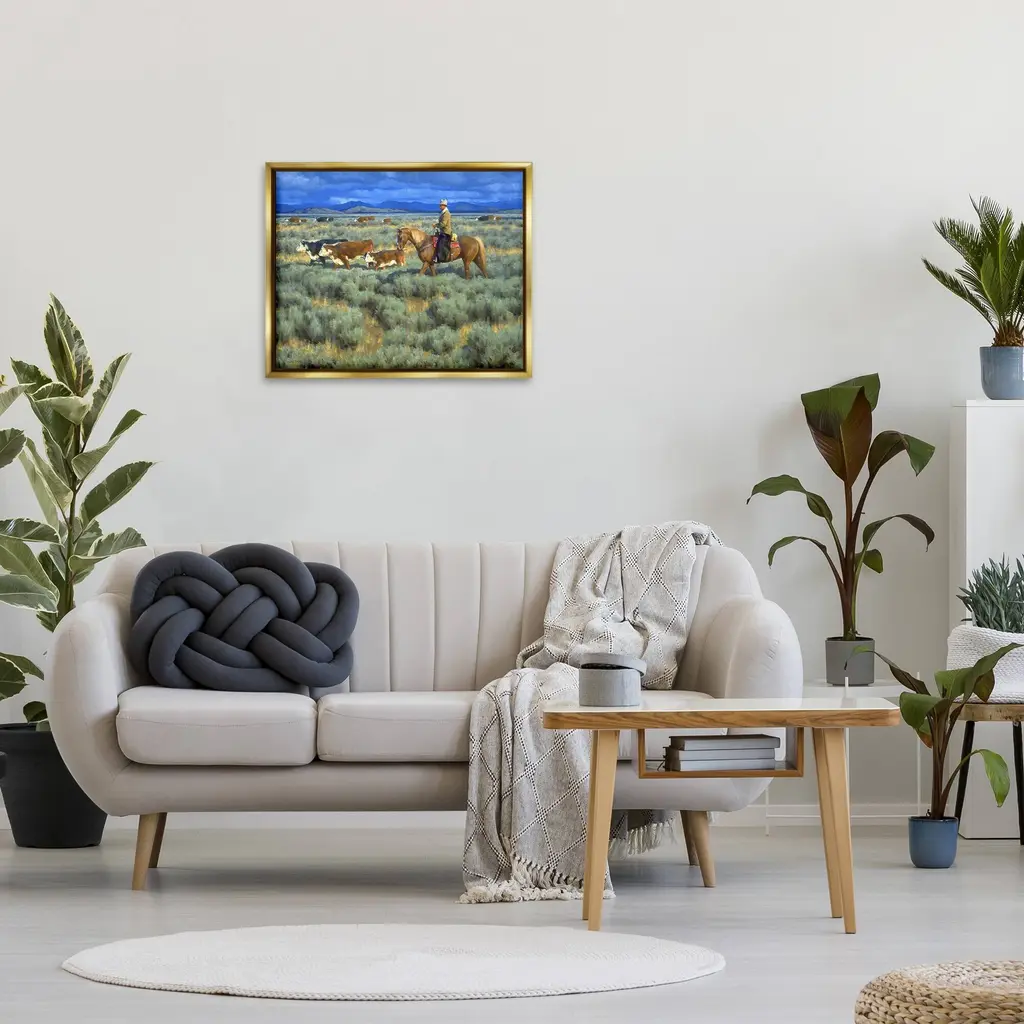 Stupell Cowboy Rounding Cattle Framed Floater Canvas Wall Art Design By Jimmy Dyer - 31 X 25 - Gold