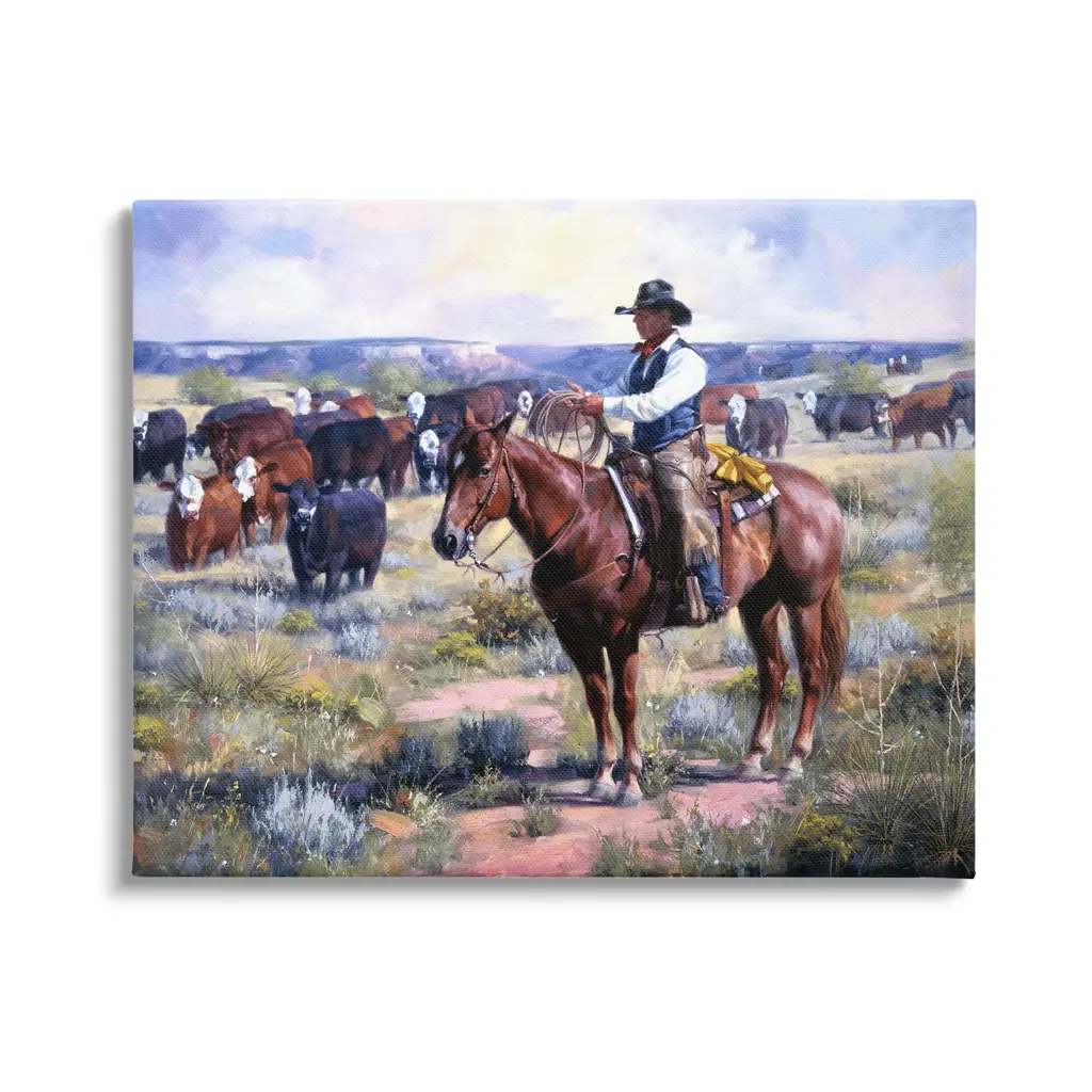 Add dimension to any room with our textured Framed Giclee Artwork. Our framed artwork is securely mounted into a 1.5-inch thick wood grain frame and ready to hang. Frames are available in three alluring styles: black, gray farmhouse and white. In addition, you should check out our oversized options if you want a statement piece. Stupell Wall Art is made in the USA.Features: Dimensions: 14 x 1.5 x 11 FramedFramed Giclee Products are available in the sizes 14"x11", 20"x16" or 30"x24". All Framed Giclee Products have a 1.5" Depth. Wall Art is Ready to Hang with Hardware Free Hanging. No installation required. For Easy Set Up Lean or Layer Artwork on Shelf or Against Wall.Our giclée prints are carefully mounted on a durable MDF backing, and then perfectly finished in a 1.5 inch thick woodgrain frame. Mounted frame colors include black, gray farmhouse and white. Made In USA.Artwork Relates To: Animal, Cattle, Cow, Mammal, Person, Horse, Nature, Grassland, Countryside, Farm, Ranch, Rural, Pasture, Grass, Plant, Equestrian, CowboyDesign by Jimmy Dyer