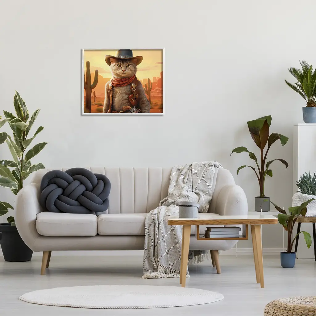 Add dimension to any room with our textured Framed Giclee Artwork. Our framed artwork is securely mounted into a 1.5-inch thick wood grain frame and ready to hang. Frames are available in three alluring styles: black, gray farmhouse and white. In addition, you should check out our oversized options if you want a statement piece. Stupell Wall Art is made in the USA.Features: Dimensions: 14 x 1.5 x 11 FramedFramed Giclee Products are available in the sizes 14"x11", 20"x16" or 30"x24". All Framed Giclee Products have a 1.5" Depth. Wall Art is Ready to Hang with Hardware Free Hanging. No installation required. For Easy Set Up Lean or Layer Artwork on Shelf or Against Wall.Our giclée prints are carefully mounted on a durable MDF backing, and then perfectly finished in a 1.5 inch thick woodgrain frame. Mounted frame colors include black, gray farmhouse and white. Made In USA.Artwork Relates To: Animal, Cat, Mammal, Pet, Nature, Cowboy Hat, Cactus, Plant, Cowboy, Desert, Landscape, CanyonDesign by Michael David Ward