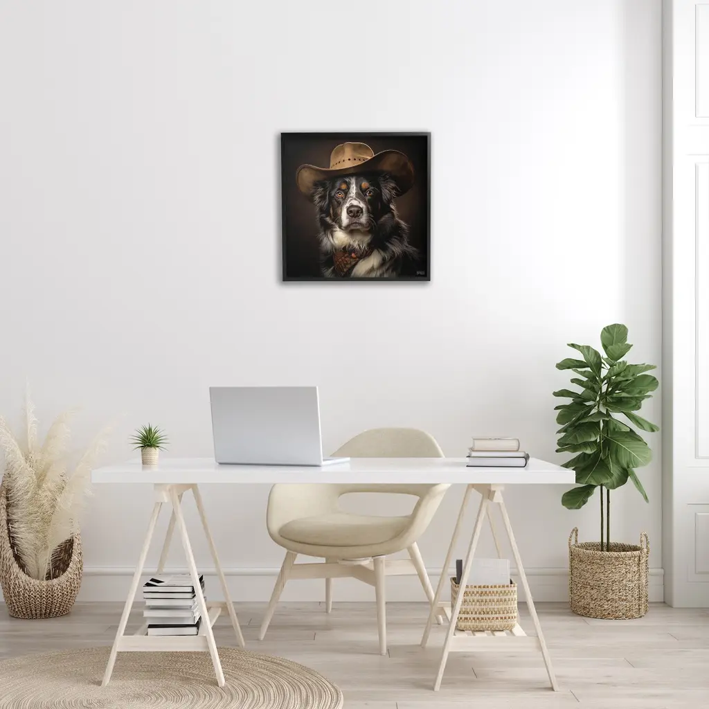 Add dimension to any room with our textured Framed Giclee Artwork. Our framed artwork is securely mounted into a 1.5-inch thick wood grain frame and ready to hang. Frames are available in three alluring styles: black, gray farmhouse and white. In addition, you should check out our oversized options if you want a statement piece. Stupell Wall Art is made in the USA.Features: Dimensions: 12 x 1.5 x 12 FramedFramed Giclee Product Sizes Include 12"x12", 17"x17", and 24"x24". Framed Giclee Products have a 1.5" Depth. Wall Art is Ready to Hang with Hardware Free Hanging. No installation required. For Easy Set Up Lean or Layer Artwork on Shelf or Against Wall.Our giclée prints are carefully mounted on a durable MDF backing, and then perfectly finished in a 1.5 inch thick woodgrain frame. Mounted frame colors include black, gray farmhouse and white. Made In USA.Artwork Relates To: Animal, Mammal, Cowboy Hat, Fashion, Southwestern, Cowboy, Pet, DogDesign by RB