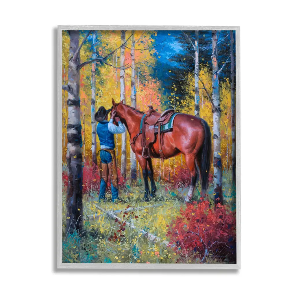 Stupell Cowboy Strapping Colt Horse Wild West Fall Forest Framed Wall Art, Design By Jack Sorenson - Multi-Color - 24 X 30 - Grey