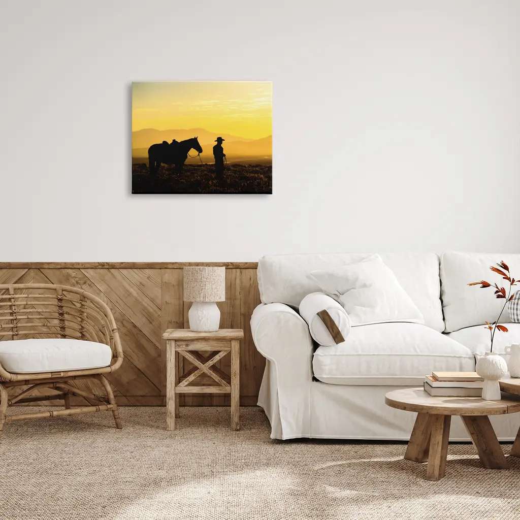 We create our stretched canvas to the highest standards. Using only the highest quality inks and canvas on Mimaki printers, we hand-cut and stretch each piece over a 1.5-inch thick wooden frame for hanging. As a result, the art comes ready to hang on the sturdy ledge with no installation required. Stupell Wall Art is made in the USA.Features: Dimensions: 20 x 1.5 x 16 InchesStretched Canvas Sizes Include Standard: 20 x 1.5 x 16 Large: 30 x 1.5 x 20 X-Large: 40 x 1.5 x 30 Oversized: 48 x 1.5 x 36Wall Art is Ready to Hang with Hardware Free Hanging. No installation required. For Easy Set Up Lean or Layer Artwork on Shelf or Against Wall.Our stretched canvas is created with the highest standards. We use only the highest quality inks and canvas on our in house Mimaki printers, and then hand cut and stretch each piece over a 1.5 inch thick wooden frame for hanging. Made In USA.Artwork Relates To: Person, Animal, Horse, Mammal, Backlighting, Horseback Riding, Leisure Activities, Design by PBurchettePhoto