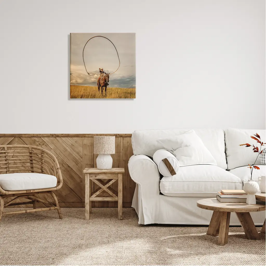 We create our stretched canvas to the highest standards. Using only the highest quality inks and canvas on Mimaki printers, we hand-cut and stretch each piece over a 1.5-inch thick wooden frame for hanging. As a result, the art comes ready to hang on the sturdy ledge with no installation required. Stupell Wall Art is made in the USA.Features: Dimensions: 17 x 1.5 x 17 InchesStretched Canvas Sizes Include Standard: 17 x 1.5 x 17 Large: 24 x 1.5 x 24 X-Large: 30 x 1.5 x 30 Oversized: 36 x 1.5 x 36Wall Art is Ready to Hang with Hardware Free Hanging. No installation required. For Easy Set Up Lean or Layer Artwork on Shelf or Against Wall.Our stretched canvas is created with the highest standards. We use only the highest quality inks and canvas on our in house Mimaki printers, and then hand cut and stretch each piece over a 1.5 inch thick wooden frame for hanging. Made In USA.Artwork Relates To: Animal, Horse, Mammal, Person, Saddle, Halter, Cowboy, Lasso, Rodeo, PhotographyDesign by PBurchettePhoto