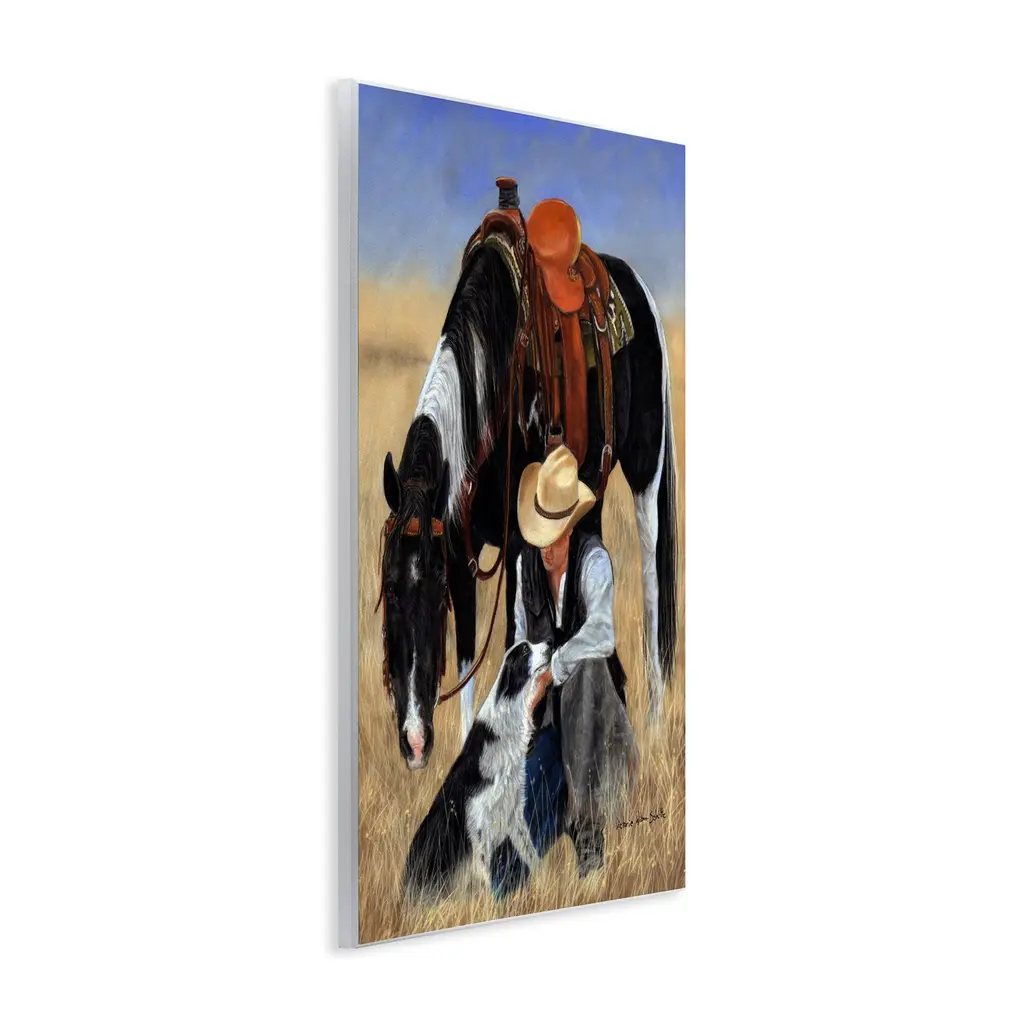 Our wall plaques start as high-quality lithograph prints mounted on durable 0.5-inch thick MDF wood. Each piece is hand finished and comes with a fresh layer of white foil on the sides to give it a crisp, clean look. Plaques arrive ready to hang without installation and come with removable plastic corners to keep them from damage in transit. Wall Art is made in the USA.Features: Dimensions: 10 x 0.5 x 15 InchesWall Plaque Sizes Include Standard: 10 x 0.5 x 15 Oversized: 13 x 0.5 x 19Wall Art is Ready to Hang with Hardware Free Hanging. No installation required. For Easy Set Up Lean or Layer Artwork on Shelf or Against Wall.All of our wall plaques start off as high quality lithograph prints that are then mounted on durable 0.5 inch thick MDF wood. Each piece is hand finished and comes with a fresh layer of foil on the sides to give it a crisp clean look. Made In USA.Artwork Relates To: Animal, Horse, Mammal, Colt Horse, Stallion, Desert, Cowboy, Man, Dog, LandscapeDesign by Victoria Schultz