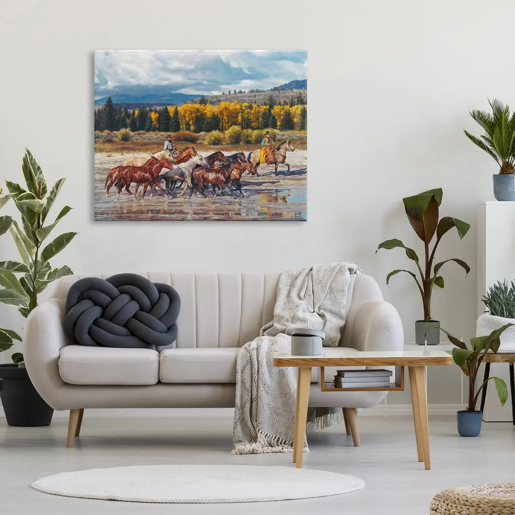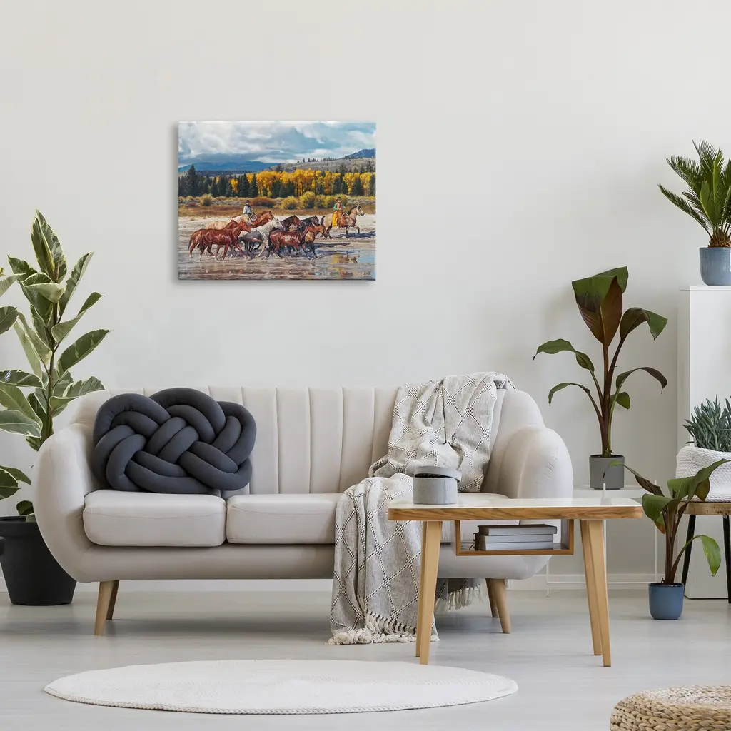 Stupell Cowboys Galloping River Landscape Canvas Wall Art By David Graham - 30 X 24