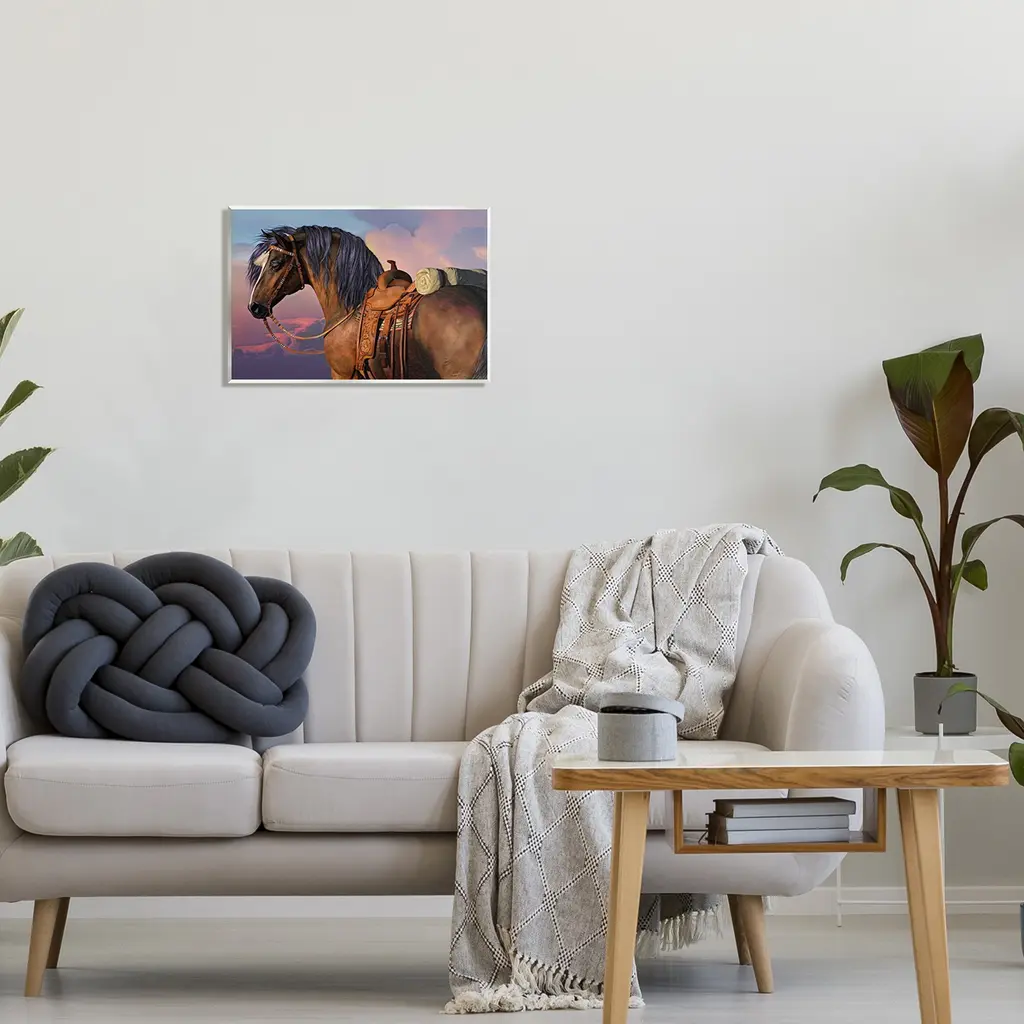 Our wall plaques start as high-quality lithograph prints mounted on durable 0.5-inch thick MDF wood. Each piece is hand finished and comes with a fresh layer of white foil on the sides to give it a crisp, clean look. Plaques arrive ready to hang without installation and come with removable plastic corners to keep them from damage in transit. Stupell Industries Wall Art is made in the USA.Features: Dimensions: 15 x 0.5 x 10 InchesWall Plaque Sizes Include Standard: 15 x 0.5 x 10 Oversized: 19 x 0.5 x 13Wall Art is Ready to Hang with Hardware Free Hanging. No installation required. For Easy Set Up Lean or Layer Artwork on Shelf or Against Wall.All of our wall plaques start off as high quality lithograph prints that are then mounted on durable 0.5 inch thick MDF wood. Each piece is hand finished and comes with a fresh layer of foil on the sides to give it a crisp clean look. Made In USA.Artwork Relates To: Animal, Horse, Mammal, Stallion, Saddle, PortraitDesign by Laurie Prindle
