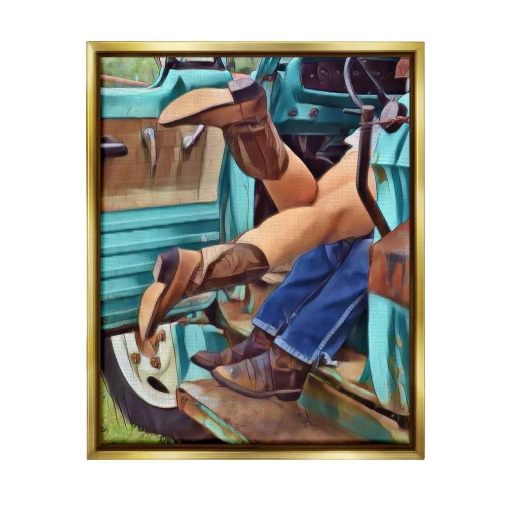Elevate your home or office to the next level with Stupell Framed Floating Canvas Wall Art. Our premium hand-stretched canvas is mounted securely into a sturdy lightweight frame. The museum-style gap between the wrapped canvas and the box frame gives the illusion of floating artwork. Stupell Wall Art is made in the USA.Features: Dimensions: 17 x 1.7 x 21 Frame, 16 x 1.5 x 20 Canvas ArtFloating Frame Canvas Products are available in sizes 17"x21" and 25"x31". All Floating Frame Canvas Products have a 1.7" Depth.Wall Art is Ready to Hang with Hardware Free Hanging. No Installation required. For Easy Set Up Lean or Layer Artwork on Shelf or Against Wall. Artwork is Permently Fixed into the Frame.Our elevated 1.7" Thick Floating Frame is the perfect complement to our canvas style Wall Art. We use only the highest quality inks in house with industry leading printing solutions. Canvas is hand stretched over a durable wood foundation and then mounted securly into a Modern Box Frame. Made in the USA.Artwork Relates To: Equestrian, Rodeo, Country, Southwestern, Cowgirl, Cowboy, Couple, Romance, Car, TruckDesign by Jesse Keith