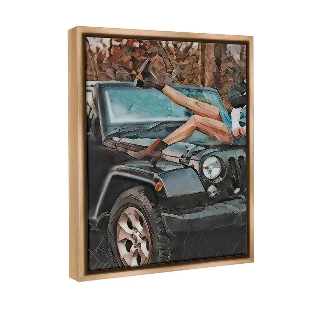 Stupell Cowgirl On Car Hood Framed Floater Canvas Wall Art Design By Jesse Keith - 17 X 21 - Brown