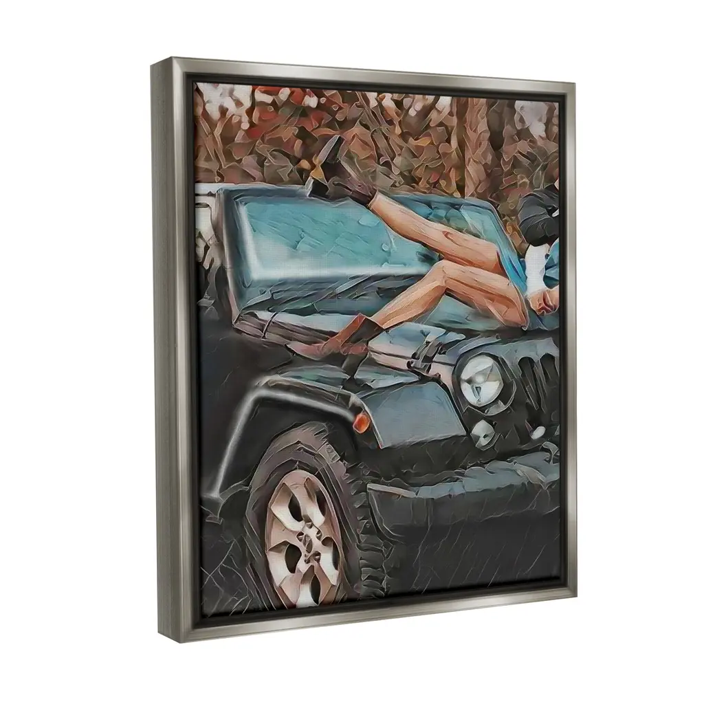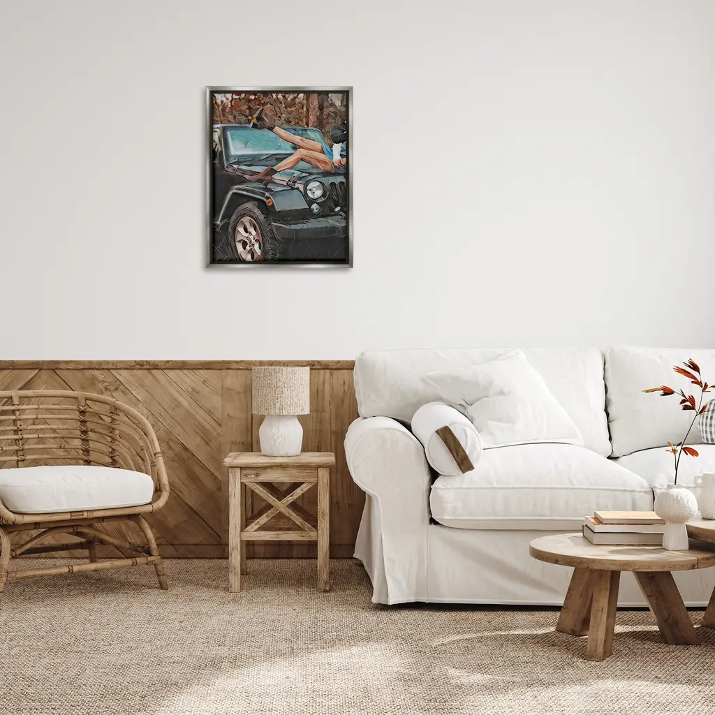 Stupell Cowgirl On Car Hood Framed Floater Canvas Wall Art Design By Jesse Keith - 25 X 31 - Grey