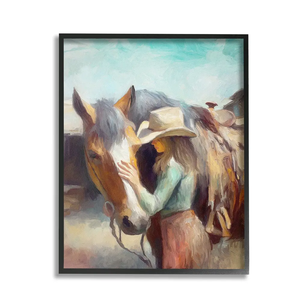 Add dimension to any room with our textured Framed Giclee Artwork. Our framed artwork is securely mounted into a 1.5-inch thick wood grain frame and ready to hang. Frames are available in three alluring styles: black, gray farmhouse and white. In addition, you should check out our oversized options if you want a statement piece. Stupell Wall Art is made in the USA.Features: Dimensions: 11 x 1.5 x 14 FramedFramed Giclee Products are available in the sizes 11"x14", 16"x20" or 24"x30". All Framed Giclee Products have a 1.5" Depth. Wall Art is Ready to Hang with Hardware Free Hanging. No installation required. For Easy Set Up Lean or Layer Artwork on Shelf or Against Wall.Our giclée prints are carefully mounted on a durable MDF backing, and then perfectly finished in a 1.5 inch thick woodgrain frame. Mounted frame colors include black, gray farmhouse and white. Made In USA.Artwork Relates To: Animal, Horse, Mammal, Person, Woman, Horse, Cowgirl, Southwester, Country, Farm, LandscapeDesign by Ramona Murdock