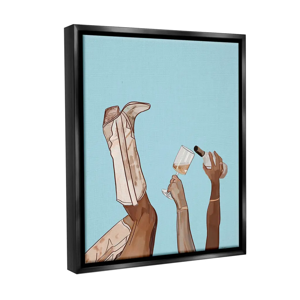 Elevate your home or office to the next level with Stupell Framed Floating Canvas Wall Art. Our premium hand-stretched canvas is mounted securely into a sturdy lightweight frame. The museum-style gap between the wrapped canvas and the box frame gives the illusion of floating artwork. Stupell Wall Art is made in the USA.Features: Dimensions: 17 x 1.7 x 21 Frame, 16 x 1.5 x 20 Canvas ArtFloating Frame Canvas Products are available in sizes 17"x21" and 25"x31". All Floating Frame Canvas Products have a 1.7" Depth.Wall Art is Ready to Hang with Hardware Free Hanging. No Installation required. For Easy Set Up Lean or Layer Artwork on Shelf or Against Wall. Artwork is Permently Fixed into the Frame.Our elevated 1.7" Thick Floating Frame is the perfect complement to our canvas style Wall Art. We use only the highest quality inks in house with industry leading printing solutions. Canvas is hand stretched over a durable wood foundation and then mounted securly into a Modern Box Frame. Made in the USA.Artwork Relates To: Equestrian, Rodeo, Country, Southwestern, Cowgirl, Cowboy Boot, Wine, Champagne, Liquor, CocktailDesign by Amelia Noyes