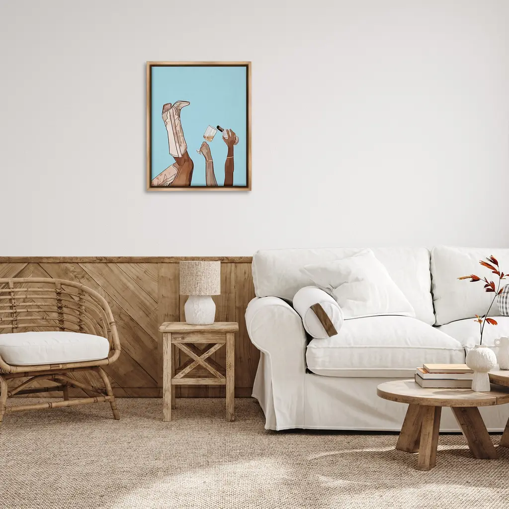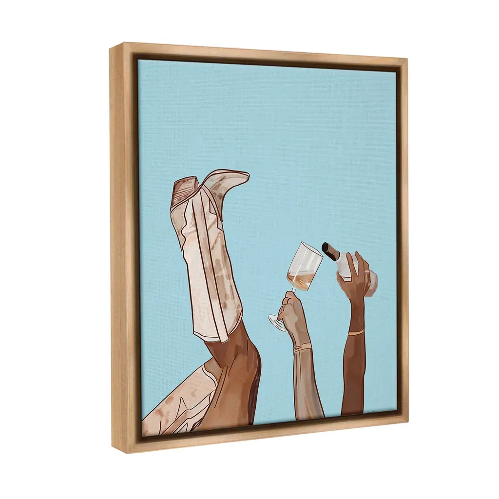 Elevate your home or office to the next level with Stupell Framed Floating Canvas Wall Art. Our premium hand-stretched canvas is mounted securely into a sturdy lightweight frame. The museum-style gap between the wrapped canvas and the box frame gives the illusion of floating artwork. Stupell Wall Art is made in the USA.Features: Dimensions: 17 x 1.7 x 21 Frame, 16 x 1.5 x 20 Canvas ArtFloating Frame Canvas Products are available in sizes 17"x21" and 25"x31". All Floating Frame Canvas Products have a 1.7" Depth.Wall Art is Ready to Hang with Hardware Free Hanging. No Installation required. For Easy Set Up Lean or Layer Artwork on Shelf or Against Wall. Artwork is Permently Fixed into the Frame.Our elevated 1.7" Thick Floating Frame is the perfect complement to our canvas style Wall Art. We use only the highest quality inks in house with industry leading printing solutions. Canvas is hand stretched over a durable wood foundation and then mounted securly into a Modern Box Frame. Made in the USA.Artwork Relates To: Equestrian, Rodeo, Country, Southwestern, Cowgirl, Cowboy Boot, Wine, Champagne, Liquor, CocktailDesign by Amelia Noyes
