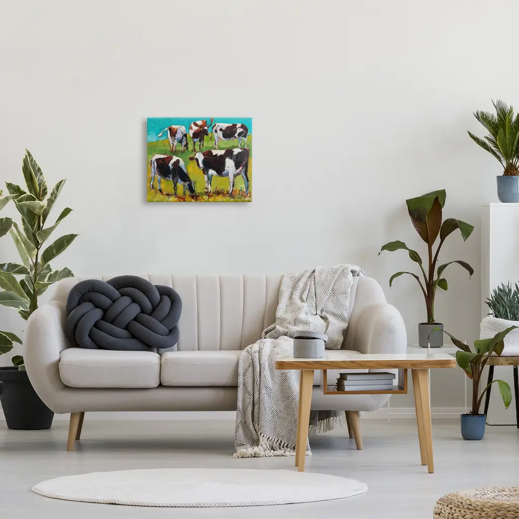 We create our stretched canvas to the highest standards. Using only the highest quality inks and canvas on Mimaki printers, we hand-cut and stretch each piece over a 1.5-inch thick wooden frame for hanging. As a result, the art comes ready to hang on the sturdy ledge with no installation required. Stupell Wall Art is made in the USA.Features: Dimensions: 20 x 1.5 x 16 InchesStretched Canvas Sizes Include Standard: 20 x 1.5 x 16 Large: 30 x 1.5 x 20 X-Large: 40 x 1.5 x 30 Oversized: 48 x 1.5 x 36Wall Art is Ready to Hang with Hardware Free Hanging. No installation required. For Easy Set Up Lean or Layer Artwork on Shelf or Against Wall.Our stretched canvas is created with the highest standards. We use only the highest quality inks and canvas on our in house Mimaki printers, and then hand cut and stretch each piece over a 1.5 inch thick wooden frame for hanging. Made In USA.Artwork Relates To: Animal, Cattle, Mammal, Cow, Person, Dairy Cow, CalfDesign by Sally Hootnick