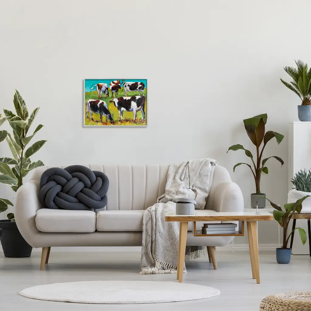 Add dimension to any room with our textured Framed Giclee Artwork. Our framed artwork is securely mounted into a 1.5-inch thick wood grain frame and ready to hang. Frames are available in three alluring styles: black, gray farmhouse and white. In addition, you should check out our oversized options if you want a statement piece. Stupell Wall Art is made in the USA.Features: Dimensions: 14 x 1.5 x 11 FramedFramed Giclee Sizes Include Standard: 14 x 1.5 x 11 Large: 20 x 1.5 x 16 Oversized: 30 x 1.5 x 24Wall Art is Ready to Hang with Hardware Free Hanging. No installation required. For Easy Set Up Lean or Layer Artwork on Shelf or Against Wall.Our giclée prints are carefully mounted on a durable MDF backing, and then perfectly finished in a 1.5 inch thick woodgrain frame. Mounted frame colors include black, gray farmhouse and white. Made In USA.Artwork Relates To: Animal, Cattle, Mammal, Cow, Person, Dairy Cow, CalfDesign by Sally Hootnick