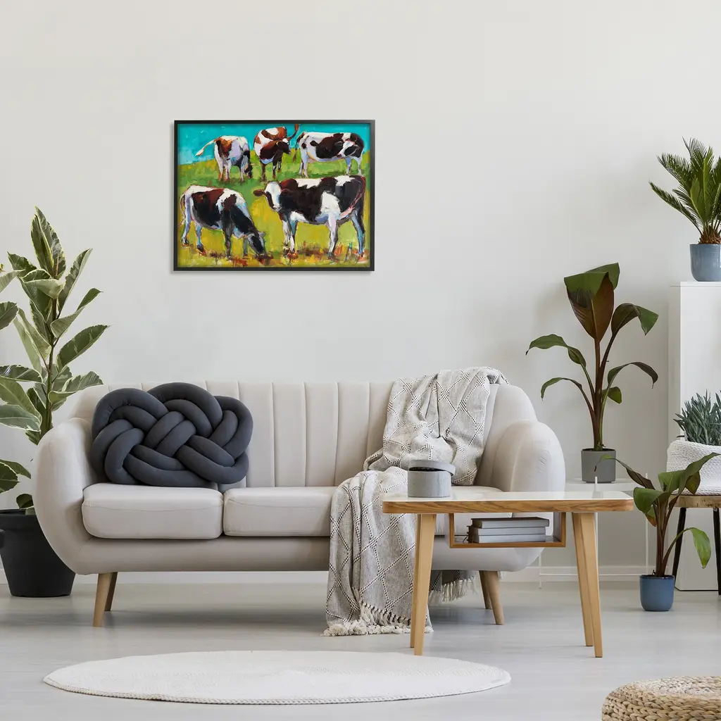 Add dimension to any room with our textured Framed Giclee Artwork. Our framed artwork is securely mounted into a 1.5-inch thick wood grain frame and ready to hang. Frames are available in three alluring styles: black, gray farmhouse and white. In addition, you should check out our oversized options if you want a statement piece. Stupell Wall Art is made in the USA.Features: Dimensions: 14 x 1.5 x 11 FramedFramed Giclee Sizes Include Standard: 14 x 1.5 x 11 Large: 20 x 1.5 x 16 Oversized: 30 x 1.5 x 24Wall Art is Ready to Hang with Hardware Free Hanging. No installation required. For Easy Set Up Lean or Layer Artwork on Shelf or Against Wall.Our giclée prints are carefully mounted on a durable MDF backing, and then perfectly finished in a 1.5 inch thick woodgrain frame. Mounted frame colors include black, gray farmhouse and white. Made In USA.Artwork Relates To: Animal, Cattle, Mammal, Cow, Person, Dairy Cow, CalfDesign by Sally Hootnick