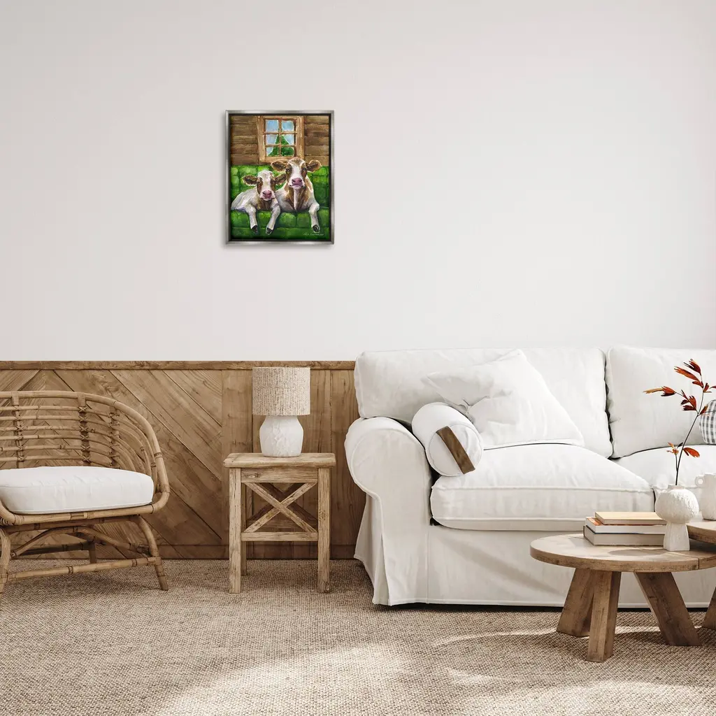 Elevate your home or office to the next level with Stupell Framed Floating Canvas Wall Art. Our premium hand-stretched canvas is mounted securely into a sturdy lightweight frame. The museum-style gap between the wrapped canvas and the box frame gives the illusion of floating artwork. Stupell Wall Art is made in the USA.Features: Dimensions: 17 x 1.7 x 21 Frame, 16 x 1.5 x 20 Canvas ArtFloating Frame Canvas Products are available in sizes 17"x21" and 25"x31". All Floating Frame Canvas Products have a 1.7" Depth.Wall Art is Ready to Hang with Hardware Free Hanging. No Installation required. For Easy Set Up Lean or Layer Artwork on Shelf or Against Wall. Artwork is Permently Fixed into the Frame.Our elevated 1.7" Thick Floating Frame is the perfect complement to our canvas style Wall Art. We use only the highest quality inks in house with industry leading printing solutions. Canvas is hand stretched over a durable wood foundation and then mounted securly into a Modern Box Frame. Made in the USA.Artwork Relates To: Animal, Cattle, Cow, Mammal, Farm, Country, Couch, Cabin, BarnDesign by GeorgeDyachenkoArt
