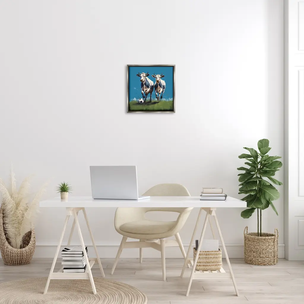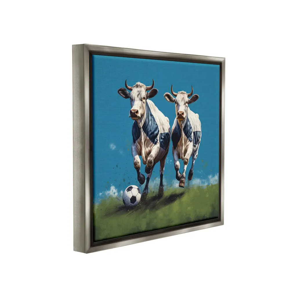 Stupell Cows Playing Soccer Framed Floater Canvas Wall Art Design By Lazar Studio - 18 X 18 - Grey