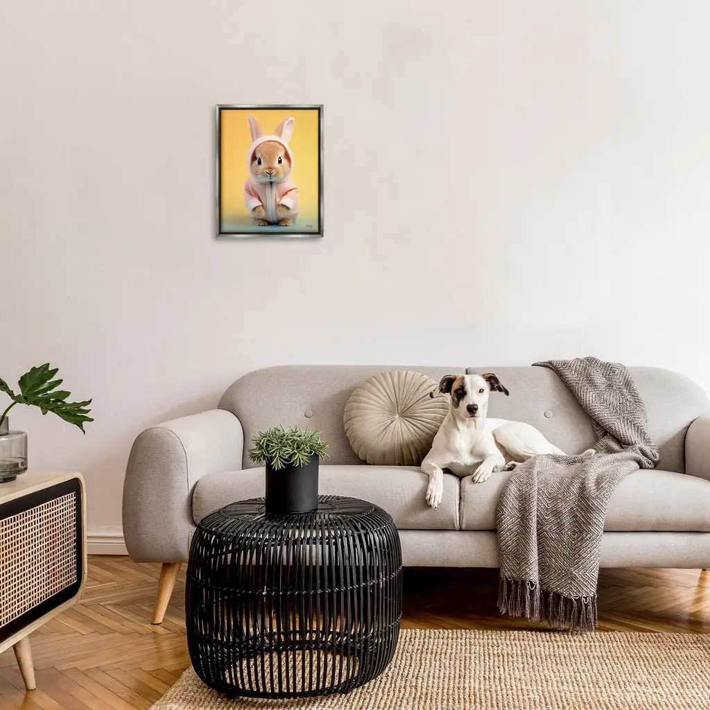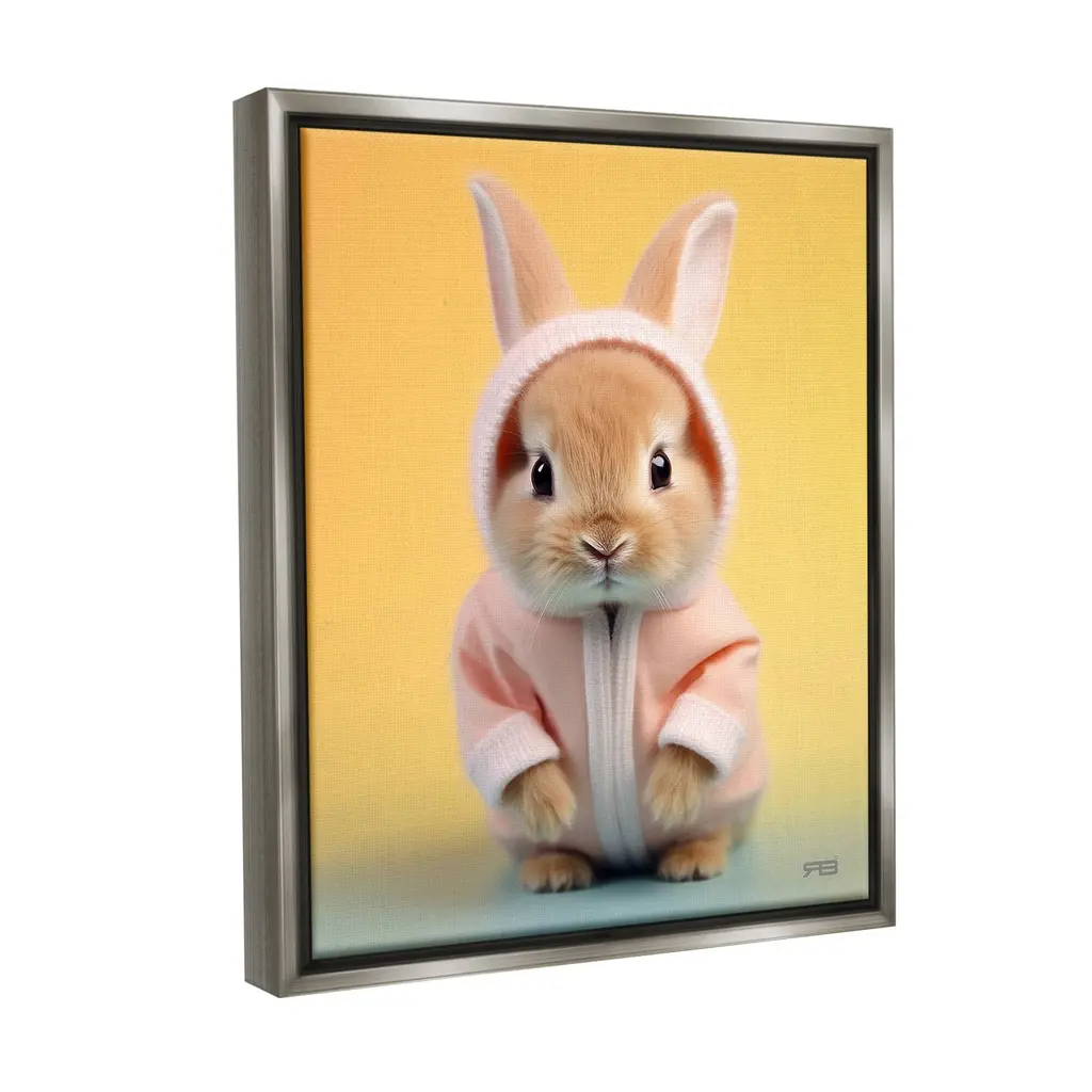 Elevate your home or office to the next level with Stupell Framed Floating Canvas Wall Art. Our premium hand-stretched canvas is mounted securely into a sturdy lightweight frame. The museum-style gap between the wrapped canvas and the box frame gives the illusion of floating artwork. Stupell Wall Art is made in the USA.Features: Dimensions: 17 x 1.7 x 21 Frame, 16 x 1.5 x 20 Canvas ArtFloating Frame Canvas Products are available in sizes 17"x21" and 25"x31". All Floating Frame Canvas Products have a 1.7" Depth.Wall Art is Ready to Hang with Hardware Free Hanging. No Installation required. For Easy Set Up Lean or Layer Artwork on Shelf or Against Wall. Artwork is Permently Fixed into the Frame.Our elevated 1.7" Thick Floating Frame is the perfect complement to our canvas style Wall Art. We use only the highest quality inks in house with industry leading printing solutions. Canvas is hand stretched over a durable wood foundation and then mounted securly into a Modern Box Frame. Made in the USA.Artwork Relates To: Animal, Mammal, Rabbit, Sweater, Pet, Bunny, Cozy, CuddleDesign by RB