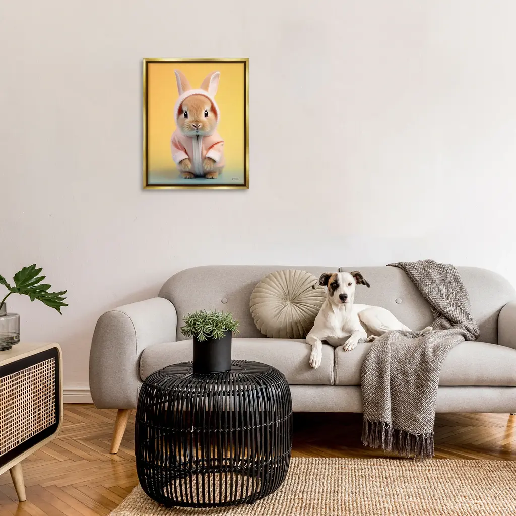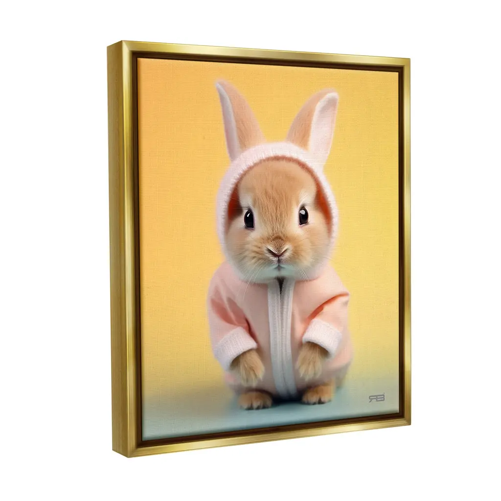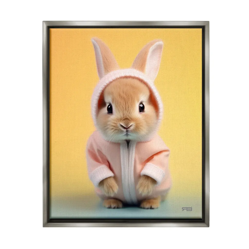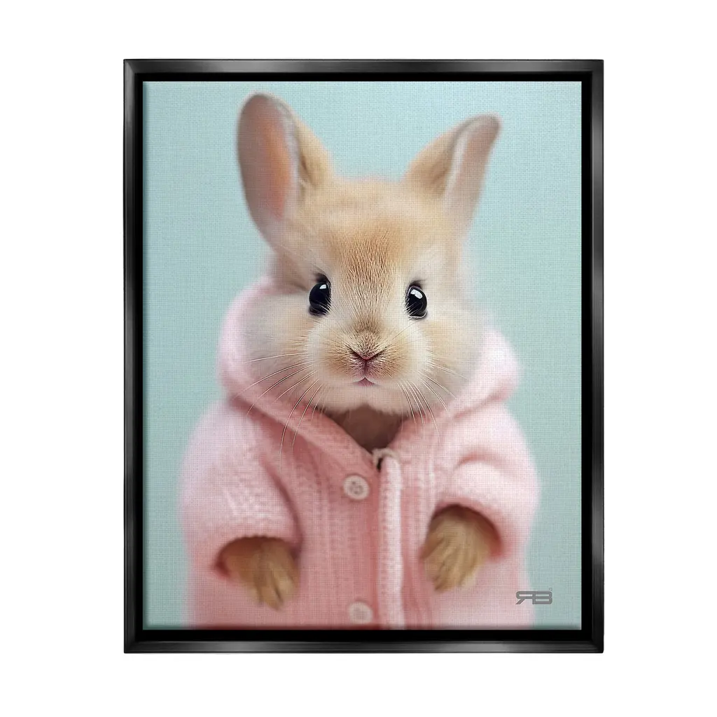 Elevate your home or office to the next level with Stupell Framed Floating Canvas Wall Art. Our premium hand-stretched canvas is mounted securely into a sturdy lightweight frame. The museum-style gap between the wrapped canvas and the box frame gives the illusion of floating artwork. Stupell Wall Art is made in the USA.Features: Dimensions: 17 x 1.7 x 21 Frame, 16 x 1.5 x 20 Canvas ArtFloating Frame Canvas Products are available in sizes 17"x21" and 25"x31". All Floating Frame Canvas Products have a 1.7" Depth.Wall Art is Ready to Hang with Hardware Free Hanging. No Installation required. For Easy Set Up Lean or Layer Artwork on Shelf or Against Wall. Artwork is Permently Fixed into the Frame.Our elevated 1.7" Thick Floating Frame is the perfect complement to our canvas style Wall Art. We use only the highest quality inks in house with industry leading printing solutions. Canvas is hand stretched over a durable wood foundation and then mounted securly into a Modern Box Frame. Made in the USA.Artwork Relates To: Animal, Mammal, Rabbit, Sweater, Pet, Bunny, Cozy, CuddleDesign by RB