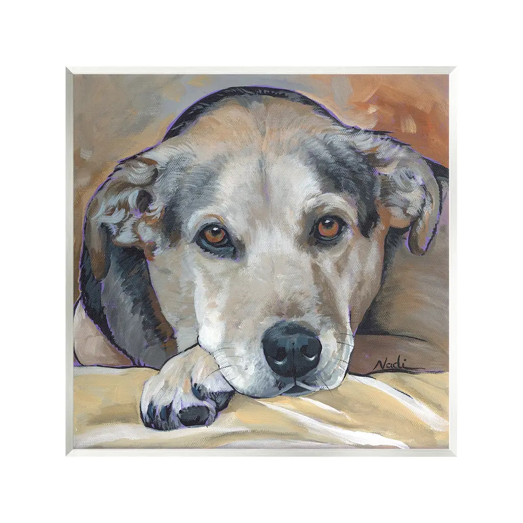 Elevate your home or office to the next level with Stupell Framed Floating Canvas Wall Art. Our premium hand-stretched canvas is mounted securely into a sturdy lightweight frame. The museum-style gap between the wrapped canvas and the box frame gives the illusion of floating artwork. Stupell Wall Art is made in the USA.Features: Dimensions: 18 x 1.7 x 18 Frame, 17 x 1.5 x 17 Canvas ArtFloating Frame Canvas Products are available in sizes 18"x18" and 25"x25". All Floating Frame Canvas Products have a 1.7" Depth.Wall Art is Ready to Hang with Hardware Free Hanging. No Installation required. For Easy Set Up Lean or Layer Artwork on Shelf or Against Wall. Artwork is Permently Fixed into the Frame.Our elevated 1.7" Thick Floating Frame is the perfect complement to our canvas style Wall Art. We use only the highest quality inks in house with industry leading printing solutions. Canvas is hand stretched over a durable wood foundation and then mounted securly into a Modern Box Frame. Made in the USA.Artwork Relates To: Animal, Canine, Dog, Pet, Portrait, PaintingDesign by Nadi Spencer