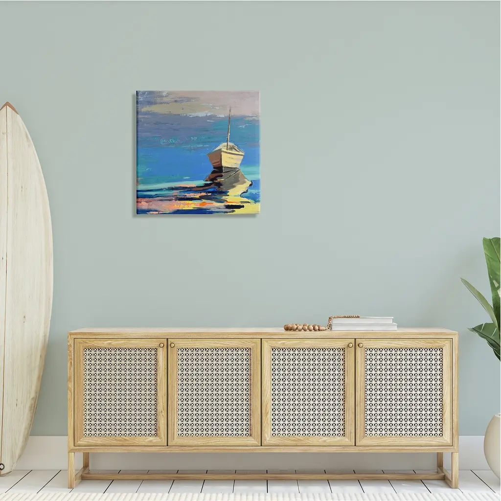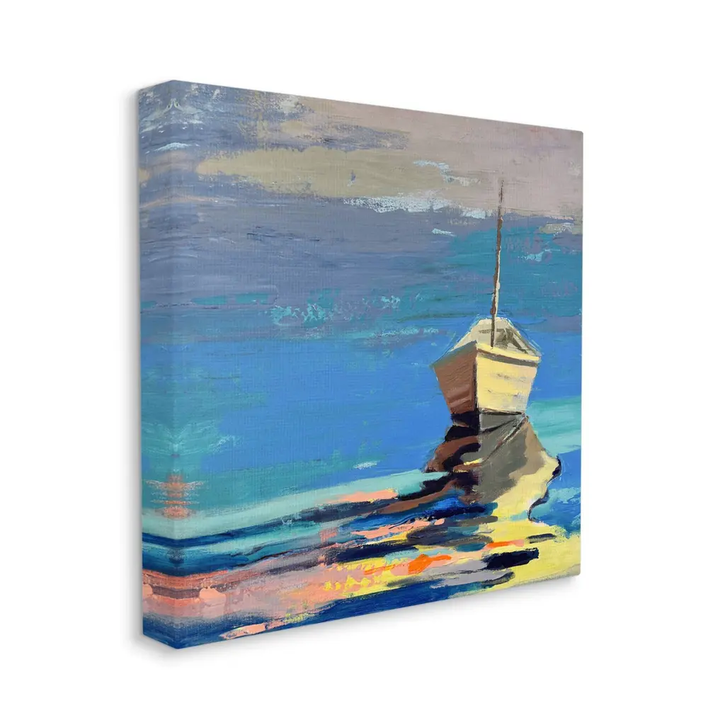 Stupell Cozy Fishing Boat Impressionist Sunset Painting Canvas Wall Art - Multi-Color - 24 X 24