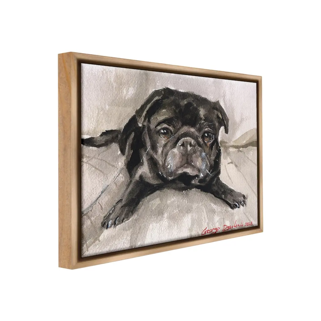 Elevate your home or office to the next level with Stupell Framed Floating Canvas Wall Art. Our premium hand-stretched canvas is mounted securely into a sturdy lightweight frame. The museum-style gap between the wrapped canvas and the box frame gives the illusion of floating artwork. Stupell Wall Art is made in the USA.Features: Dimensions: 21 x 1.7 x 17 Frame, 20 x 1.5 x 16 Canvas ArtFloating Frame Canvas Products are available in sizes 21"x17" and 31"x25". All Floating Frame Canvas Products have a 1.7" Depth.Wall Art is Ready to Hang with Hardware Free Hanging. No Installation required. For Easy Set Up Lean or Layer Artwork on Shelf or Against Wall. Artwork is Permently Fixed into the Frame.Our elevated 1.7" Thick Floating Frame is the perfect complement to our canvas style Wall Art. We use only the highest quality inks in house with industry leading printing solutions. Canvas is hand stretched over a durable wood foundation and then mounted securly into a Modern Box Frame. Made in the USA.Artwork Relates To: Animal, Canine, Dog, Pet, Portrait, Painting, PugDesign by GeorgeDyachenkoArt