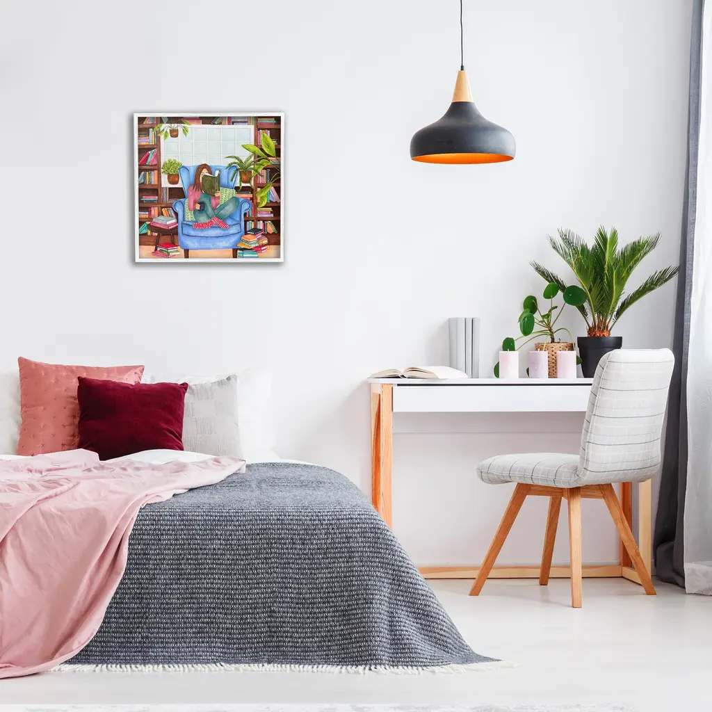 Add dimension to any room with our textured Framed Giclee Artwork. Our framed artwork is securely mounted into a 1.5-inch thick wood grain frame and ready to hang. Frames are available in three alluring styles: black, gray farmhouse and white. In addition, you should check out our oversized options if you want a statement piece. Stupell Wall Art is made in the USA.Features: Dimensions: 12 x 1.5 x 12 FramedFramed Giclee Product Sizes Include 12"x12", 17"x17", and 24"x24". Framed Giclee Products have a 1.5" Depth. Wall Art is Ready to Hang with Hardware Free Hanging. No installation required. For Easy Set Up Lean or Layer Artwork on Shelf or Against Wall.Our giclée prints are carefully mounted on a durable MDF backing, and then perfectly finished in a 1.5 inch thick woodgrain frame. Mounted frame colors include black, gray farmhouse and white. Made In USA.Artwork Relates To: Plant, Bookcase, Chair, Cushion, Pillow, Person, Sitting, Reading, Books, Bookstack, Botanical, Woman, GirlDesign by Ale Saiz Studio