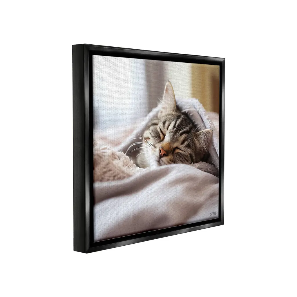 Elevate your home or office to the next level with Stupell Framed Floating Canvas Wall Art. Our premium hand-stretched canvas is mounted securely into a sturdy lightweight frame. The museum-style gap between the wrapped canvas and the box frame gives the illusion of floating artwork. Stupell Wall Art is made in the USA.Features: Dimensions: 18 x 1.7 x 18 Frame, 17 x 1.5 x 17 Canvas ArtFloating Frame Canvas Products are available in sizes 18"x18" and 25"x25". All Floating Frame Canvas Products have a 1.7" Depth.Wall Art is Ready to Hang with Hardware Free Hanging. No Installation required. For Easy Set Up Lean or Layer Artwork on Shelf or Against Wall. Artwork is Permently Fixed into the Frame.Our elevated 1.7" Thick Floating Frame is the perfect complement to our canvas style Wall Art. We use only the highest quality inks in house with industry leading printing solutions. Canvas is hand stretched over a durable wood foundation and then mounted securly into a Modern Box Frame. Made in the USA.Artwork Relates To: Blanket, Animal, Cat, Mammal, Pet, Kitten, Cuddle, Sleep, CozyDesign by RB