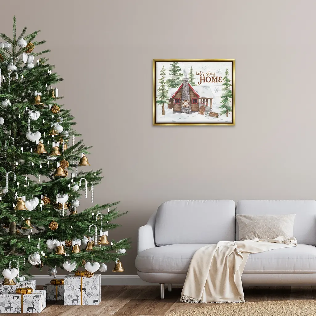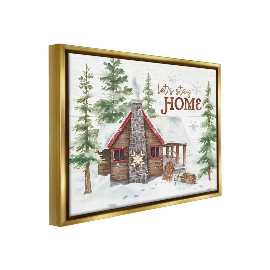 Elevate your home or office to the next level with Stupell Framed Floating Canvas Wall Art. Our premium hand-stretched canvas is mounted securely into a sturdy lightweight frame. The museum-style gap between the wrapped canvas and the box frame gives the illusion of floating artwork. Stupell Wall Art is made in the USA.Features: Dimensions: 21 x 1.7 x 17 Frame, 20 x 1.5 x 16 Canvas ArtFloating Frame Canvas Products are available in sizes 21"x17" and 31"x25". All Floating Frame Canvas Products have a 1.7" Depth.Wall Art is Ready to Hang with Hardware Free Hanging. No Installation required. For Easy Set Up Lean or Layer Artwork on Shelf or Against Wall. Artwork is Permently Fixed into the Frame.Our elevated 1.7" Thick Floating Frame is the perfect complement to our canvas style Wall Art. We use only the highest quality inks in house with industry leading printing solutions. Canvas is hand stretched over a durable wood foundation and then mounted securly into a Modern Box Frame. Made in the USA.Artwork Relates To: Cabin, House, Lodge, Tree, Christmas, Nature, Winter, Snow, Snowflake, Phrase, Let's Stay HomeDesign by Courtney Morgenstern