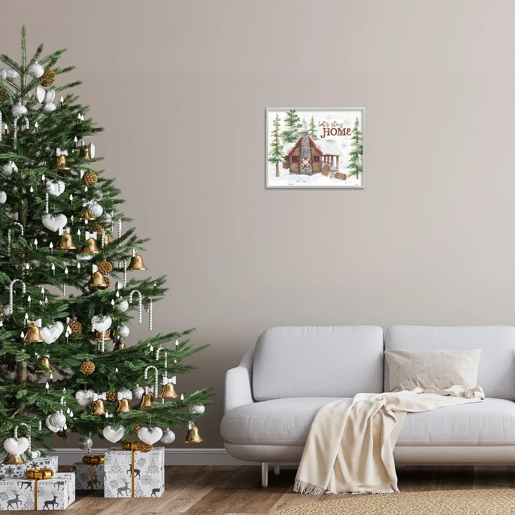 Add dimension to any room with our textured Framed Giclee Artwork. Our framed artwork is securely mounted into a 1.5-inch thick wood grain frame and ready to hang. Frames are available in three alluring styles: black, gray farmhouse and white. In addition, you should check out our oversized options if you want a statement piece. Stupell Wall Art is made in the USA.Features: Dimensions: 14 x 1.5 x 11 FramedFramed Giclee Products are available in the sizes 14"x11", 20"x16" or 30"x24". All Framed Giclee Products have a 1.5" Depth. Wall Art is Ready to Hang with Hardware Free Hanging. No installation required. For Easy Set Up Lean or Layer Artwork on Shelf or Against Wall.Our giclée prints are carefully mounted on a durable MDF backing, and then perfectly finished in a 1.5 inch thick woodgrain frame. Mounted frame colors include black, gray farmhouse and white. Made In USA.Artwork Relates To: Cabin, House, Lodge, Tree, Christmas, Nature, Winter, Snow, Snowflake, Phrase, Let's Stay HomeDesign by Courtney Morgenstern