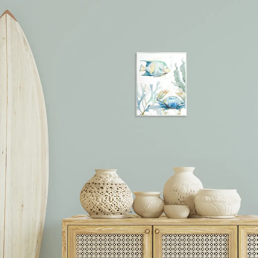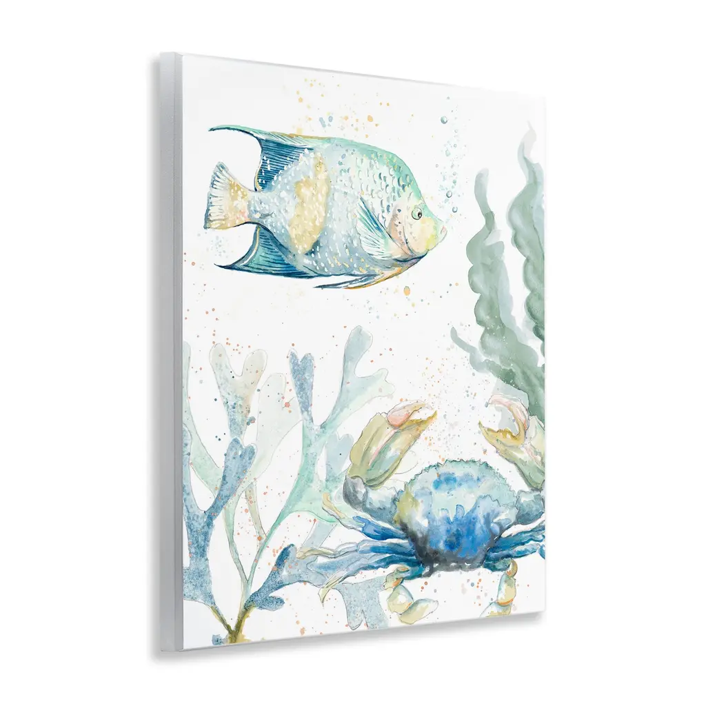 Our wall plaques start as high-quality lithograph prints mounted on durable 0.5-inch thick MDF wood. Each piece is hand finished and comes with a fresh layer of white foil on the sides to give it a crisp, clean look. Plaques arrive ready to hang without installation and come with removable plastic corners to keep them from damage in transit. Stupell Wall Art is made in the USA.Features: Dimensions: 11 x 0.5 x 14 InchesWall Art is Ready to Hang with Hardware Free Hanging. No installation required. For Easy Set Up Lean or Layer Artwork on Shelf or Against Wall.All of our wall plaques start off as high quality lithograph prints that are then mounted on durable 0.5 inch thick MDF wood. Each piece is hand finished and comes with a fresh layer of foil on the sides to give it a crisp clean look. Made In USA.Artwork Relates To: Animal, Sea Life, Invertebrate, Nature, Sea, Water, Reef, Coral, Fish, CrabDesign by Patricia Pinto