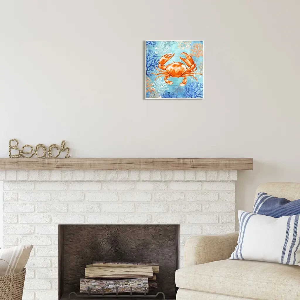 Stupell Crab With Nautical Coral Wall Plaque Art Design By Elena Vladykina Rep. Levison Designs - 12 X 12