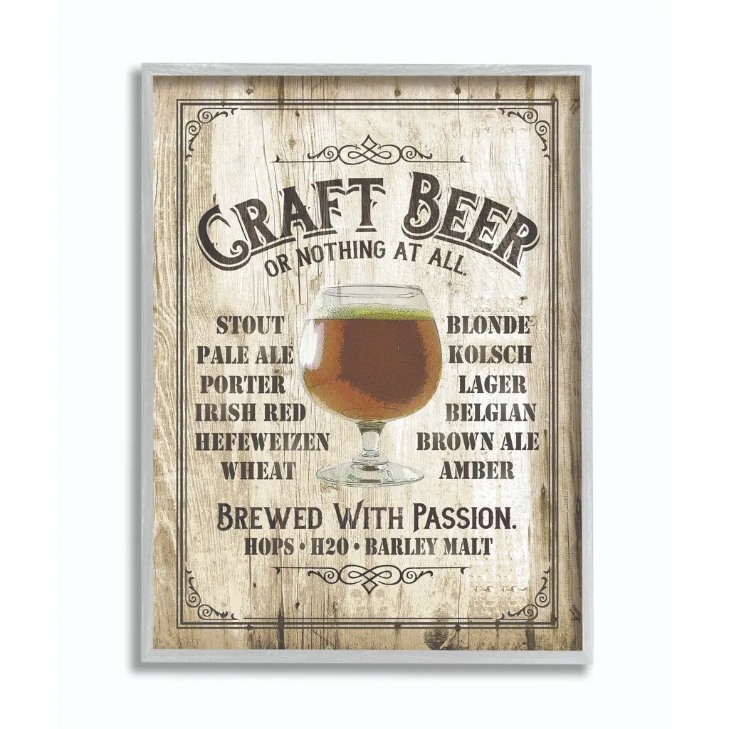 Stupell Craft Beer Sign Bar Room Wooden Texture Framed Wall Art, Design By Artist Retrorocket Studio - 11 X 14 - Grey