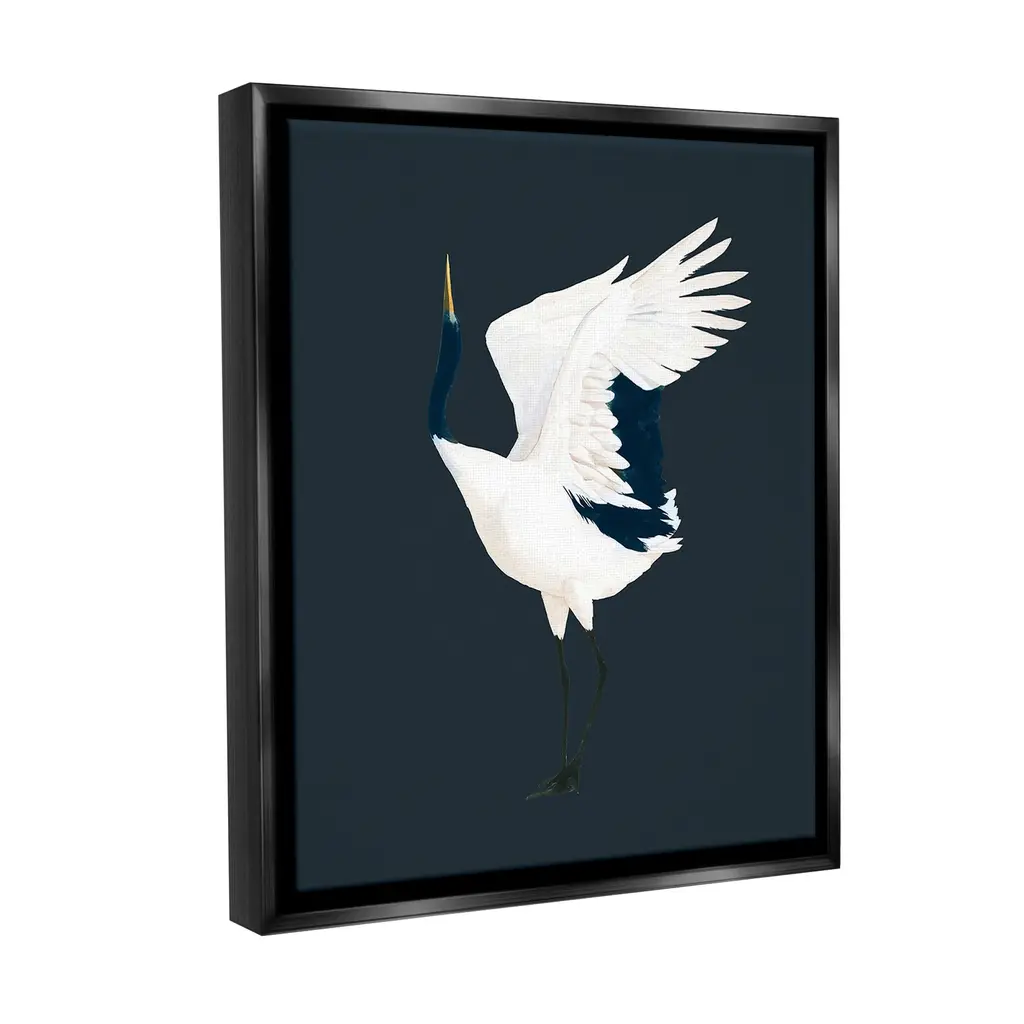 Elevate your home or office to the next level with Stupell Framed Floating Canvas Wall Art. Our premium hand-stretched canvas is mounted securely into a sturdy lightweight frame. The museum-style gap between the wrapped canvas and the box frame gives the illusion of floating artwork. Stupell Wall Art is made in the USA.Features: Dimensions: 17 x 1.7 x 21 Frame, 16 x 1.5 x 20 Canvas ArtFloating Frame Canvas Products are available in sizes 17"x21" and 25"x31". All Floating Frame Canvas Products have a 1.7" Depth.Wall Art is Ready to Hang with Hardware Free Hanging. No Installation required. For Easy Set Up Lean or Layer Artwork on Shelf or Against Wall. Artwork is Permently Fixed into the Frame.Our elevated 1.7" Thick Floating Frame is the perfect complement to our canvas style Wall Art. We use only the highest quality inks in house with industry leading printing solutions. Canvas is hand stretched over a durable wood foundation and then mounted securly into a Modern Box Frame. Made in the USA.Artwork Relates To: Animal, Bird, Crane Bird, Stork, Minimal, TraditionalDesign by Grace Popp