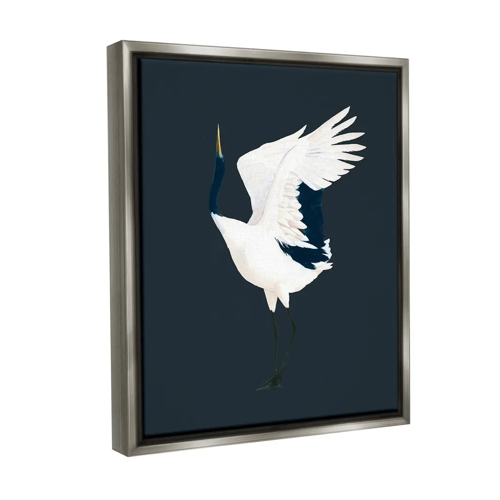 Elevate your home or office to the next level with Stupell Framed Floating Canvas Wall Art. Our premium hand-stretched canvas is mounted securely into a sturdy lightweight frame. The museum-style gap between the wrapped canvas and the box frame gives the illusion of floating artwork. Stupell Wall Art is made in the USA.Features: Dimensions: 17 x 1.7 x 21 Frame, 16 x 1.5 x 20 Canvas ArtFloating Frame Canvas Products are available in sizes 17"x21" and 25"x31". All Floating Frame Canvas Products have a 1.7" Depth.Wall Art is Ready to Hang with Hardware Free Hanging. No Installation required. For Easy Set Up Lean or Layer Artwork on Shelf or Against Wall. Artwork is Permently Fixed into the Frame.Our elevated 1.7" Thick Floating Frame is the perfect complement to our canvas style Wall Art. We use only the highest quality inks in house with industry leading printing solutions. Canvas is hand stretched over a durable wood foundation and then mounted securly into a Modern Box Frame. Made in the USA.Artwork Relates To: Animal, Bird, Crane Bird, Stork, Minimal, TraditionalDesign by Grace Popp