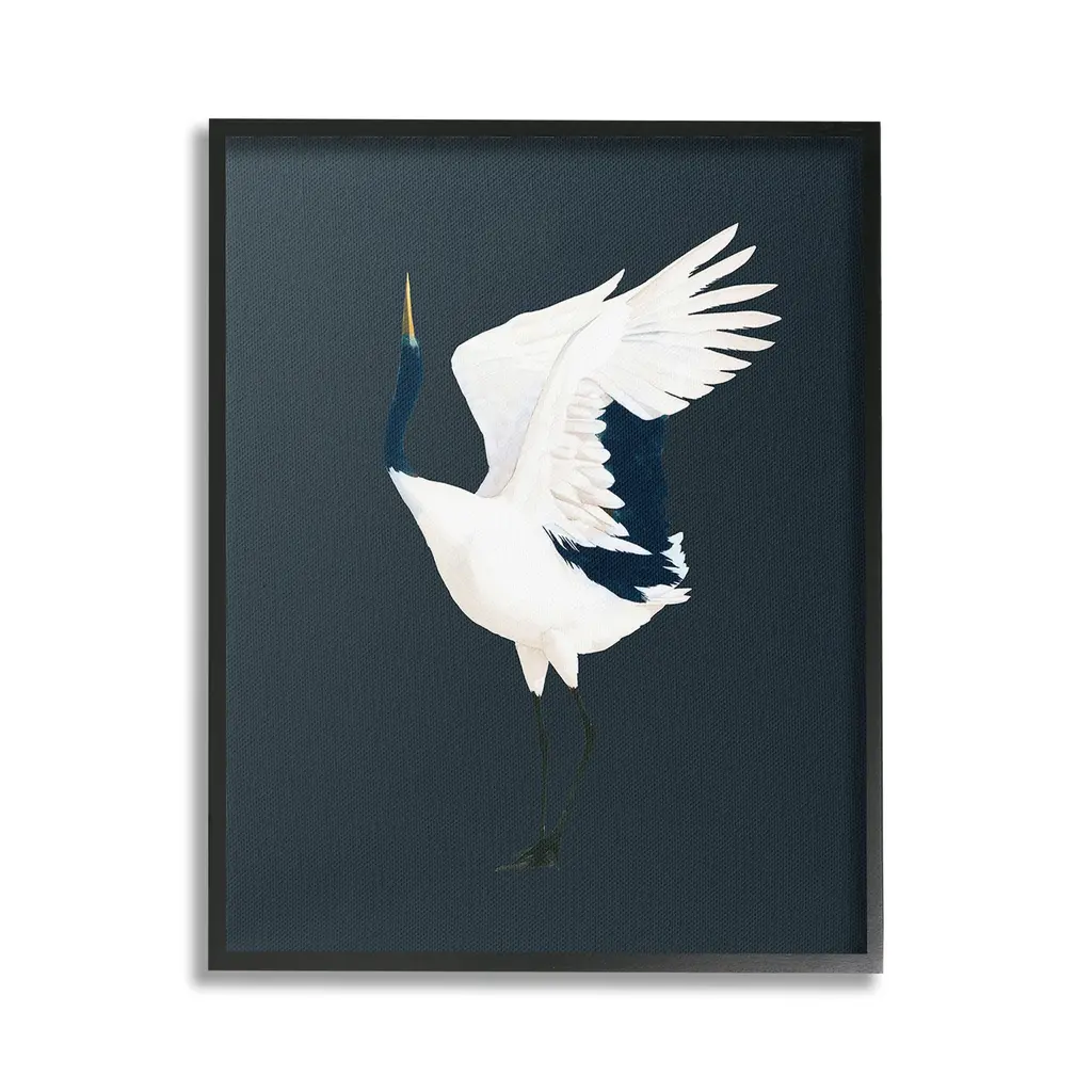 Add dimension to any room with our textured Framed Giclee Artwork. Our framed artwork is securely mounted into a 1.5-inch thick wood grain frame and ready to hang. Frames are available in three alluring styles: black, gray farmhouse and white. In addition, you should check out our oversized options if you want a statement piece. Stupell Wall Art is made in the USA.Features: Dimensions: 11 x 1.5 x 14 FramedFramed Giclee Products are available in the sizes 11"x14", 16"x20" or 24"x30". All Framed Giclee Products have a 1.5" Depth. Wall Art is Ready to Hang with Hardware Free Hanging. No installation required. For Easy Set Up Lean or Layer Artwork on Shelf or Against Wall.Our giclée prints are carefully mounted on a durable MDF backing, and then perfectly finished in a 1.5 inch thick woodgrain frame. Mounted frame colors include black, gray farmhouse and white. Made In USA.Artwork Relates To: Animal, Bird, Crane Bird, Stork, Minimal, TraditionalDesign by Grace Popp