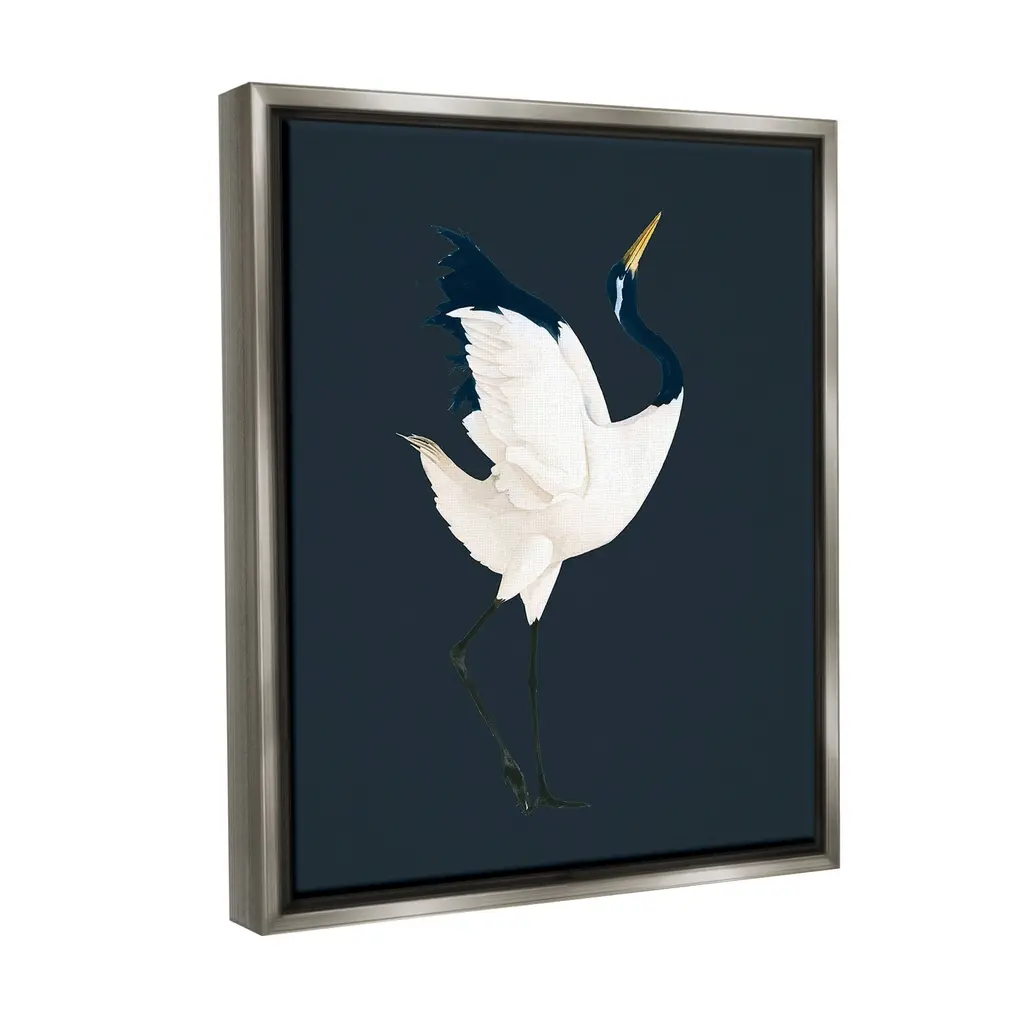 Elevate your home or office to the next level with Stupell Framed Floating Canvas Wall Art. Our premium hand-stretched canvas is mounted securely into a sturdy lightweight frame. The museum-style gap between the wrapped canvas and the box frame gives the illusion of floating artwork. Stupell Wall Art is made in the USA.Features: Dimensions: 17 x 1.7 x 21 Frame, 16 x 1.5 x 20 Canvas ArtFloating Frame Canvas Products are available in sizes 17"x21" and 25"x31". All Floating Frame Canvas Products have a 1.7" Depth.Wall Art is Ready to Hang with Hardware Free Hanging. No Installation required. For Easy Set Up Lean or Layer Artwork on Shelf or Against Wall. Artwork is Permently Fixed into the Frame.Our elevated 1.7" Thick Floating Frame is the perfect complement to our canvas style Wall Art. We use only the highest quality inks in house with industry leading printing solutions. Canvas is hand stretched over a durable wood foundation and then mounted securly into a Modern Box Frame. Made in the USA.Artwork Relates To: Animal, Bird, Crane Bird, Stork, Minimal, TraditionalDesign by Grace Popp