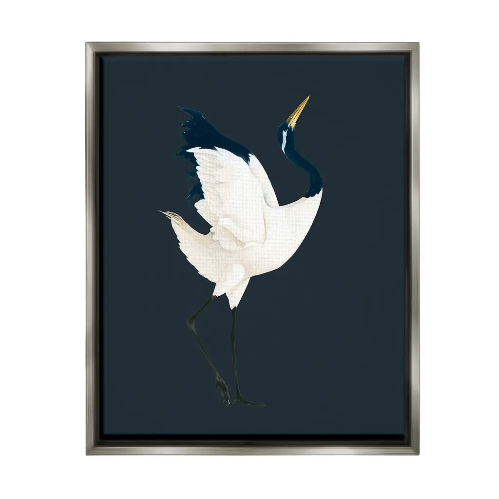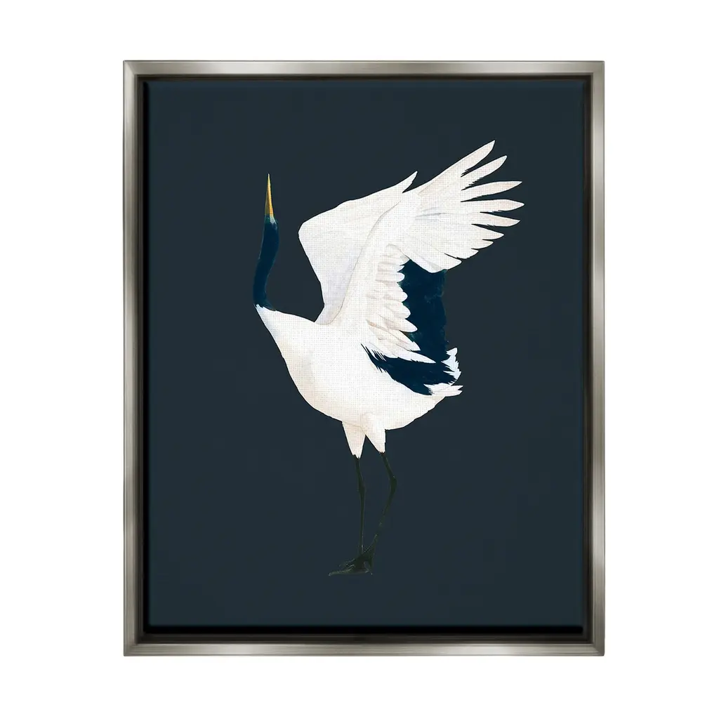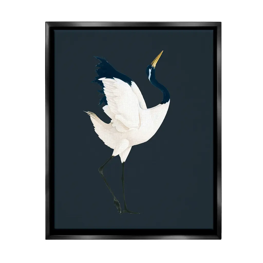 Elevate your home or office to the next level with Stupell Framed Floating Canvas Wall Art. Our premium hand-stretched canvas is mounted securely into a sturdy lightweight frame. The museum-style gap between the wrapped canvas and the box frame gives the illusion of floating artwork. Stupell Wall Art is made in the USA.Features: Dimensions: 17 x 1.7 x 21 Frame, 16 x 1.5 x 20 Canvas ArtFloating Frame Canvas Products are available in sizes 17"x21" and 25"x31". All Floating Frame Canvas Products have a 1.7" Depth.Wall Art is Ready to Hang with Hardware Free Hanging. No Installation required. For Easy Set Up Lean or Layer Artwork on Shelf or Against Wall. Artwork is Permently Fixed into the Frame.Our elevated 1.7" Thick Floating Frame is the perfect complement to our canvas style Wall Art. We use only the highest quality inks in house with industry leading printing solutions. Canvas is hand stretched over a durable wood foundation and then mounted securly into a Modern Box Frame. Made in the USA.Artwork Relates To: Animal, Bird, Crane Bird, Stork, Minimal, TraditionalDesign by Grace Popp
