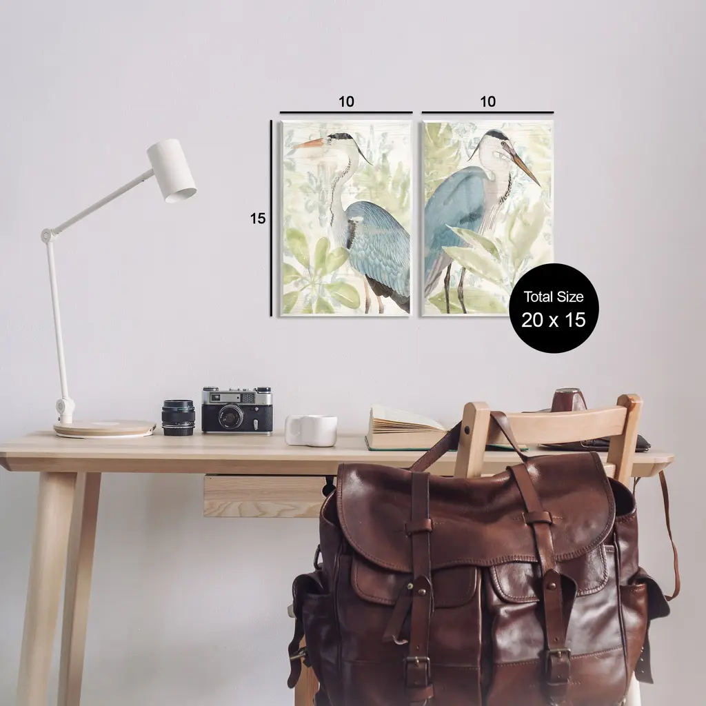 Fill any space with Stupell Wall Art Sets. Our wall plaques start as high-quality lithograph prints mounted on durable 0.5-inch thick MDF wood. Each piece is hand finished and comes with a fresh layer of white foil on the sides to give it a crisp, clean look. Plaques arrive ready to hang without installation and come with removable plastic corners to keep them from damage in transit. Stupell Industries Wall Art is made in the USA.Features: Dimensions: 2 Piece Set, Each Panel is 10 x 0.5 x 15 InchesWall Plaque Set Sizes Include Standard: 2pc, Each is 10 x 0.5 x 15 Oversized: 2pc, Each is 13 x 0.5 x 19Wall Art is Ready to Hang with Hardware Free Hanging. No installation required. For Easy Set Up Lean or Layer Artwork on Shelf or Against Wall.All of our wall plaques start off as high quality lithograph prints that are then mounted on durable 0.5 inch thick MDF wood. Each piece is hand finished and comes with a fresh layer of foil on the sides to give it a crisp clean look. Made In USA.Artwork Relates To: Animal, Bird, Waterfowl, Crane Bird, Heron, Stork, Beak, Tropical, Plant, LeafDesign by June Erica Vess