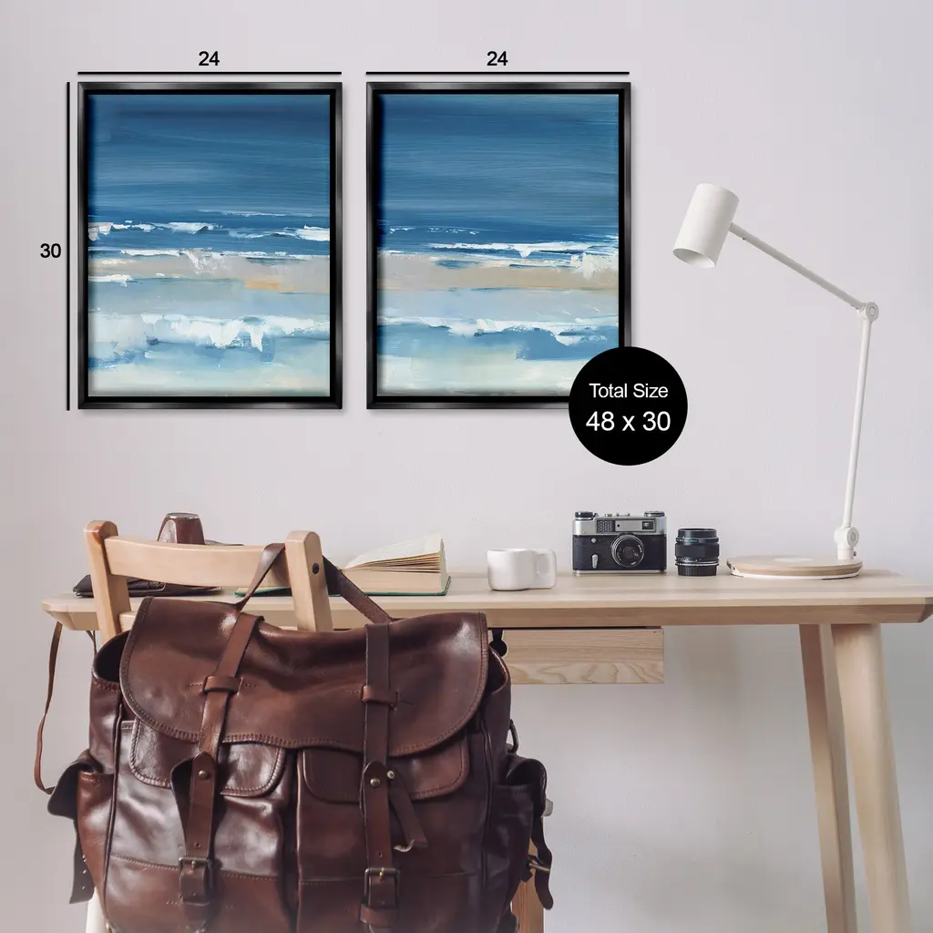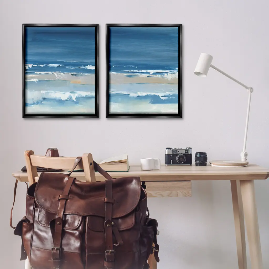 Elevate your home or office to the next level with Stupell Framed Floating Canvas Wall Art. Our premium hand-stretched canvas is mounted securely into a sturdy lightweight frame. The museum-style gap between the wrapped canvas and the box frame gives the illusion of floating artwork. Stupell Wall Art is made in the USA.Features: Dimensions: 2 Piece Set, Each Frame is 17 x 1.7 x 21Two Piece Floater Framed Canvas are available as 17x21 or 25x31 Panels. All Floater Frame Products have a 1.7" Depth.Wall Art is Ready to Hang with Hardware Free Hanging. No Installation required. For Easy Set Up Lean or Layer Artwork on Shelf or Against Wall. Artwork is Permently Fixed into the Frame.Our elevated 1.7" Thick Floating Frame is the perfect complement to our canvas style Wall Art. We use only the highest quality inks in house with industry leading printing solutions. Canvas is hand stretched over a durable wood foundation and then mounted securly into a Modern Box Frame. Made in the USA.Artwork Relates To: Nature, Painting, Water, Shore, Beach, Coast, Shoreline, Ocean, WavesDesign by Ethan Harper