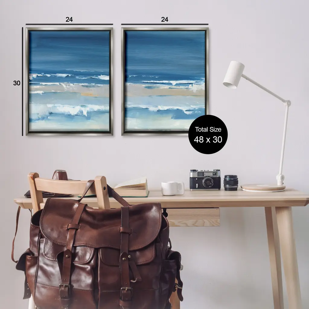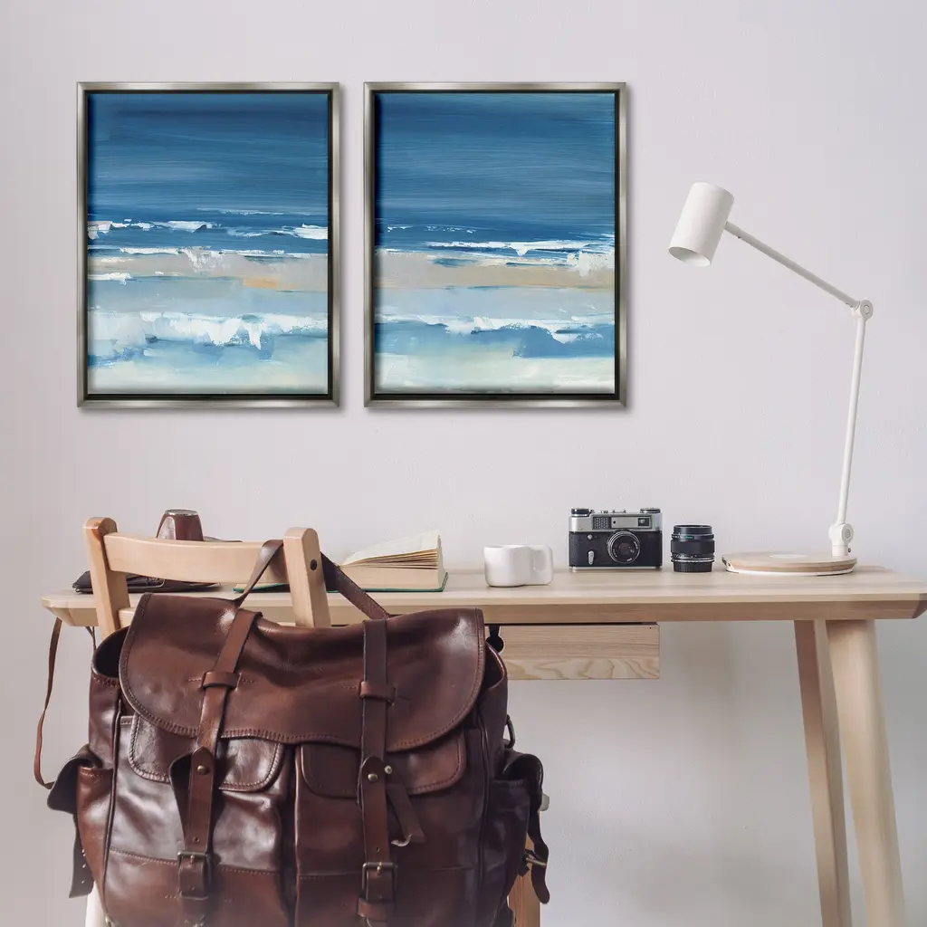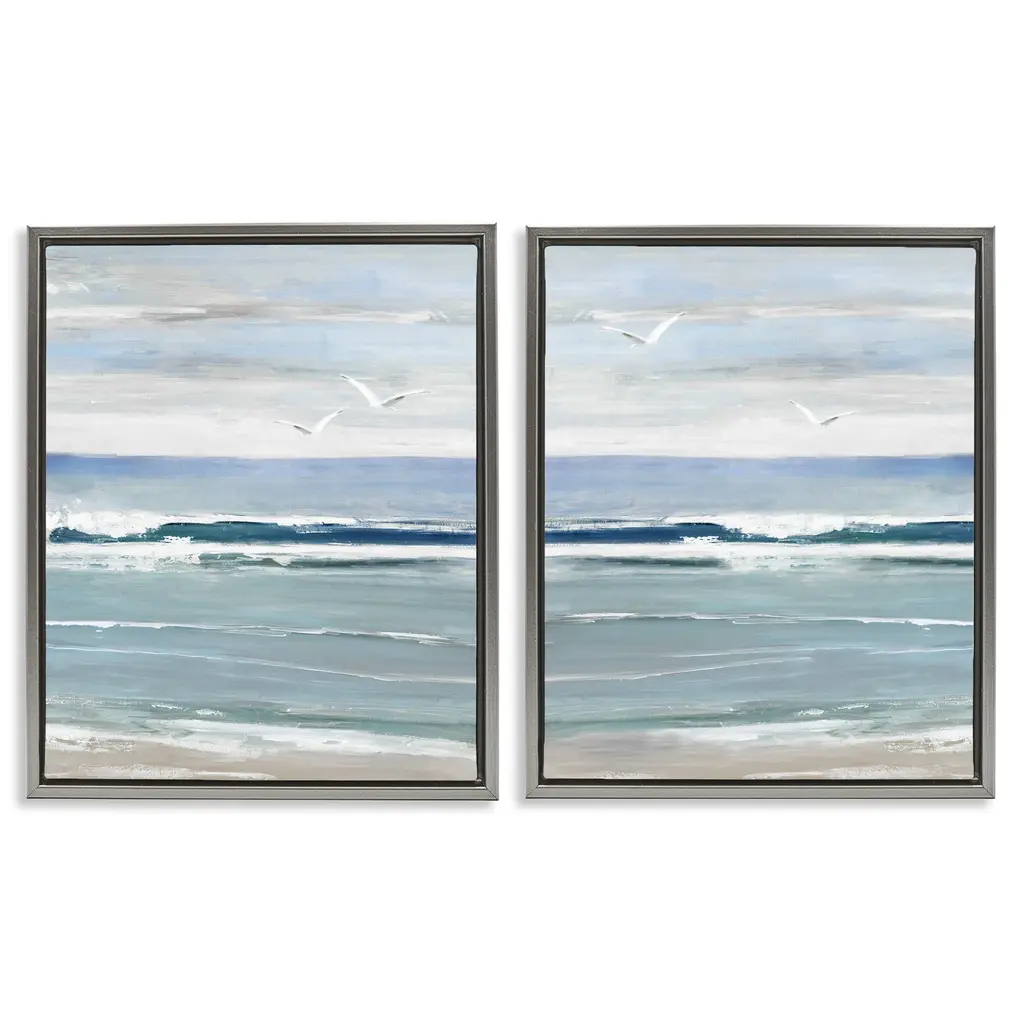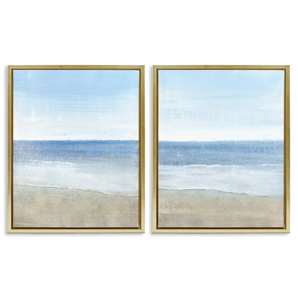 Elevate your home or office to the next level with Stupell Framed Floating Canvas Wall Art. Our premium hand-stretched canvas is mounted securely into a sturdy lightweight frame. The museum-style gap between the wrapped canvas and the box frame gives the illusion of floating artwork. Stupell Wall Art is made in the USA.Features: Dimensions: 2 Piece Set, Each Frame is 17 x 1.7 x 21Two Piece Floater Framed Canvas are available as 17x21 or 25x31 Panels. All Floater Frame Products have a 1.7" Depth.Wall Art is Ready to Hang with Hardware Free Hanging. No Installation required. For Easy Set Up Lean or Layer Artwork on Shelf or Against Wall. Artwork is Permently Fixed into the Frame.Our elevated 1.7" Thick Floating Frame is the perfect complement to our canvas style Wall Art. We use only the highest quality inks in house with industry leading printing solutions. Canvas is hand stretched over a durable wood foundation and then mounted securly into a Modern Box Frame. Made in the USA.Artwork Relates To: Nature, Painting, Water, Shore, Beach, Coast, Shoreline, Ocean, WavesDesign by Ethan Harper
