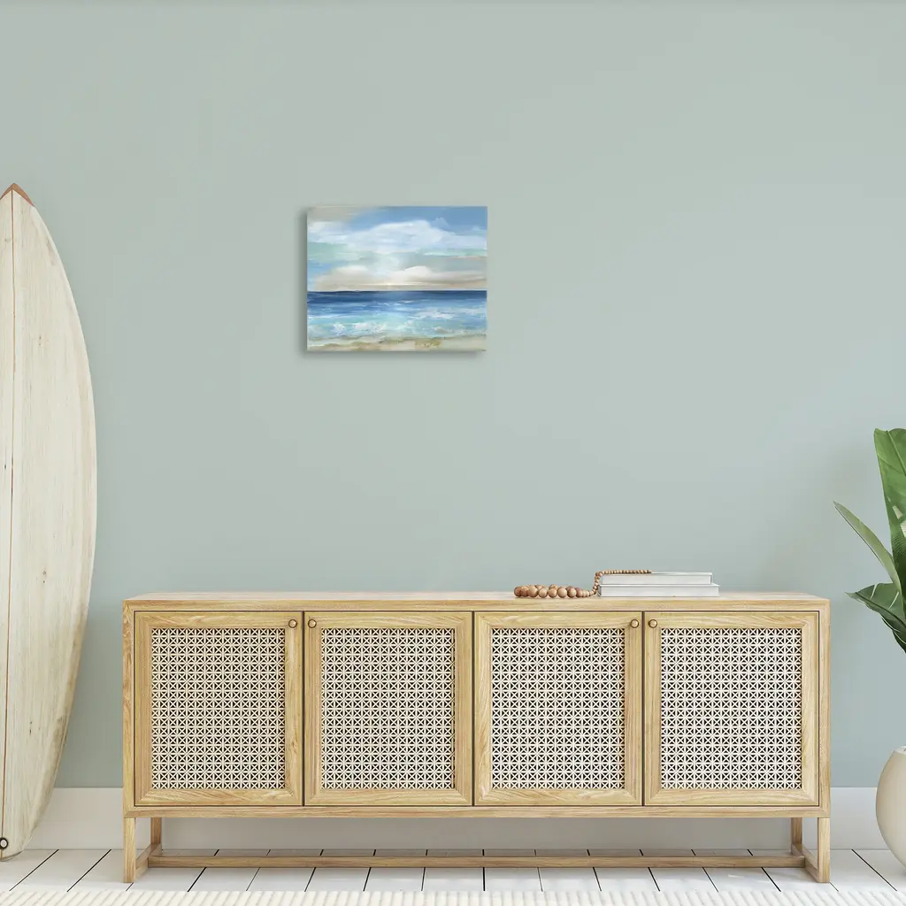 Proudly made in the USA, Our stretched canvas is created with the highest standards. We use only the highest quality inks and canvas on our in house Mimaki printers, and then hand cut and stretch each piece over a 1.5 inch thick wooden frame for hanging. The art comes ready to hang with no installation required. Not to mention, at this size, it is sure to be the focal point of any room!Features:Dimensions: 20 x 1.5 x 16 InchesStretched Canvas Sizes IncludeStandard: 20 x 1.5 x 16Large: 30 x 1.5 x 20X-Large: 40 x 1.5 x 30Oversized: 48 x 1.5 x 36Wall Art is Ready to Hang - No Installation or Hardware Needed. For Easy Set Up Lean or Layer Artwork on Shelf or Against Wall.Our stretched canvas is created with the highest standards. We use only the highest quality inks and canvas on our in house Mimaki printers, and then hand cut and stretch each piece over a 1.5 inch thick wooden frame for hanging. Made In USA.Artwork Relates To: Painting; Sea; Nature; Outdoors; Water; Sky; Beach; Shoreline; Coast; Scenery; Cloud; Landscape; Horizon; Sea WavesDesign by Nan