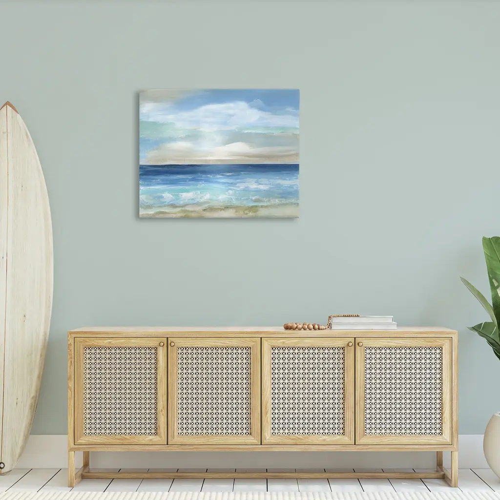 Proudly made in the USA, Our stretched canvas is created with the highest standards. We use only the highest quality inks and canvas on our in house Mimaki printers, and then hand cut and stretch each piece over a 1.5 inch thick wooden frame for hanging. The art comes ready to hang with no installation required. Not to mention, at this size, it is sure to be the focal point of any room!Features:Dimensions: 20 x 1.5 x 16 InchesStretched Canvas Sizes IncludeStandard: 20 x 1.5 x 16Large: 30 x 1.5 x 20X-Large: 40 x 1.5 x 30Oversized: 48 x 1.5 x 36Wall Art is Ready to Hang - No Installation or Hardware Needed. For Easy Set Up Lean or Layer Artwork on Shelf or Against Wall.Our stretched canvas is created with the highest standards. We use only the highest quality inks and canvas on our in house Mimaki printers, and then hand cut and stretch each piece over a 1.5 inch thick wooden frame for hanging. Made In USA.Artwork Relates To: Painting; Sea; Nature; Outdoors; Water; Sky; Beach; Shoreline; Coast; Scenery; Cloud; Landscape; Horizon; Sea WavesDesign by Nan