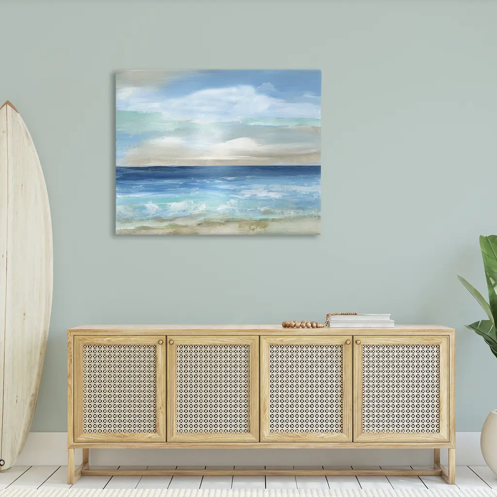 Proudly made in the USA, Our stretched canvas is created with the highest standards. We use only the highest quality inks and canvas on our in house Mimaki printers, and then hand cut and stretch each piece over a 1.5 inch thick wooden frame for hanging. The art comes ready to hang with no installation required. Not to mention, at this size, it is sure to be the focal point of any room!Features:Dimensions: 20 x 1.5 x 16 InchesStretched Canvas Sizes IncludeStandard: 20 x 1.5 x 16Large: 30 x 1.5 x 20X-Large: 40 x 1.5 x 30Oversized: 48 x 1.5 x 36Wall Art is Ready to Hang - No Installation or Hardware Needed. For Easy Set Up Lean or Layer Artwork on Shelf or Against Wall.Our stretched canvas is created with the highest standards. We use only the highest quality inks and canvas on our in house Mimaki printers, and then hand cut and stretch each piece over a 1.5 inch thick wooden frame for hanging. Made In USA.Artwork Relates To: Painting; Sea; Nature; Outdoors; Water; Sky; Beach; Shoreline; Coast; Scenery; Cloud; Landscape; Horizon; Sea WavesDesign by Nan