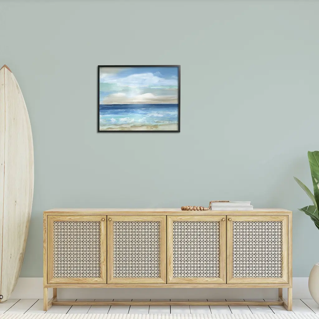 Our Framed Giclee Wall Art adds a touch of class to any space in your home or office. Frames are available in three alluring styles: black, gray farmhouse and white. Our textured artwork will add more depth and dimension to any space. Each piece is mounted with a 1.5 inch thick wood grain frame that is ready to hang! Looking for a statement piece? We have oversized artwork available.Features:Dimensions: 14 x 1.5 x 11 FramedFramed Giclee Sizes IncludeStandard: 14 x 1.5 x 11Large: 20 x 1.5 x 16Oversized: 30 x 1.5 x 24Wall Art is Ready to Hang - No Installation or Hardware Needed. For Easy Set Up Lean or Layer Artwork on Shelf or Against Wall.Our giclee prints are carefully mounted on a durable MDF backing, and then perfectly finished in a 1.5 inch thick woodgrain frame. Mounted frame colors include black, gray farmhouse and white. Made In USA.Artwork Relates To: Painting; Sea; Nature; Outdoors; Water; Sky; Beach; Shoreline; Coast; Scenery; Cloud; Landscape; Horizon; Sea WavesDesign by Nan