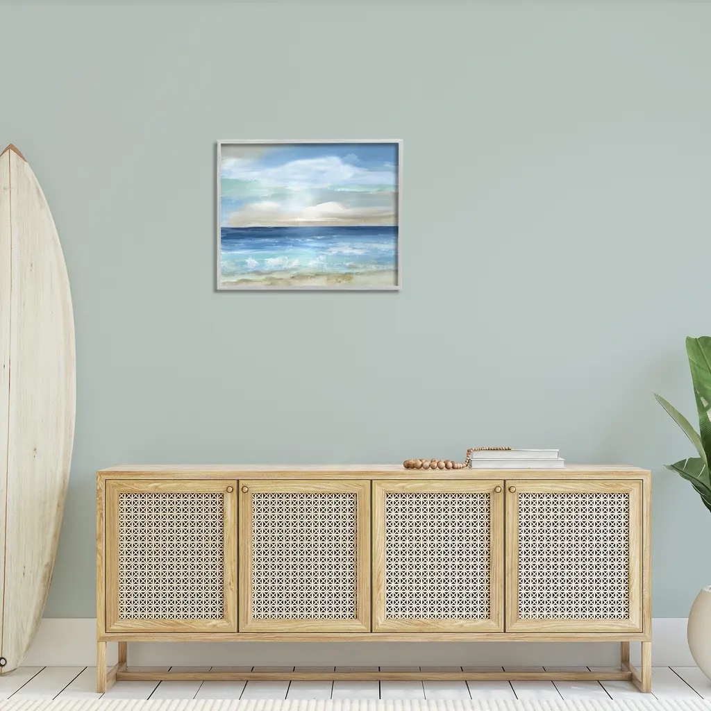 Our Framed Giclee Wall Art adds a touch of class to any space in your home or office. Frames are available in three alluring styles: black, gray farmhouse and white. Our textured artwork will add more depth and dimension to any space. Each piece is mounted with a 1.5 inch thick wood grain frame that is ready to hang! Looking for a statement piece? We have oversized artwork available.Features:Dimensions: 14 x 1.5 x 11 FramedFramed Giclee Sizes IncludeStandard: 14 x 1.5 x 11Large: 20 x 1.5 x 16Oversized: 30 x 1.5 x 24Wall Art is Ready to Hang - No Installation or Hardware Needed. For Easy Set Up Lean or Layer Artwork on Shelf or Against Wall.Our giclee prints are carefully mounted on a durable MDF backing, and then perfectly finished in a 1.5 inch thick woodgrain frame. Mounted frame colors include black, gray farmhouse and white. Made In USA.Artwork Relates To: Painting; Sea; Nature; Outdoors; Water; Sky; Beach; Shoreline; Coast; Scenery; Cloud; Landscape; Horizon; Sea WavesDesign by Nan
