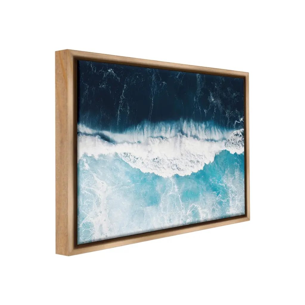 Elevate your home or office to the next level with Stupell Framed Floating Canvas Wall Art. Our premium hand-stretched canvas is mounted securely into a sturdy lightweight frame. The museum-style gap between the wrapped canvas and the box frame gives the illusion of floating artwork. Stupell Wall Art is made in the USA.Features: Dimensions: 21 x 1.7 x 17 Frame, 20 x 1.5 x 16 Canvas ArtFloating Frame Canvas Products are available in sizes 21"x17" and 31"x25". All Floating Frame Canvas Products have a 1.7" Depth.Wall Art is Ready to Hang with Hardware Free Hanging. No Installation required. For Easy Set Up Lean or Layer Artwork on Shelf or Against Wall. Artwork is Permently Fixed into the Frame.Our elevated 1.7" Thick Floating Frame is the perfect complement to our canvas style Wall Art. We use only the highest quality inks in house with industry leading printing solutions. Canvas is hand stretched over a durable wood foundation and then mounted securly into a Modern Box Frame. Made in the USA.Artwork Relates To: Nature, Sea, Water, Sea Waves, Coast, Shoreline, Tsunami, Ocean, Beach, TropicalDesign by Sisi and Seb