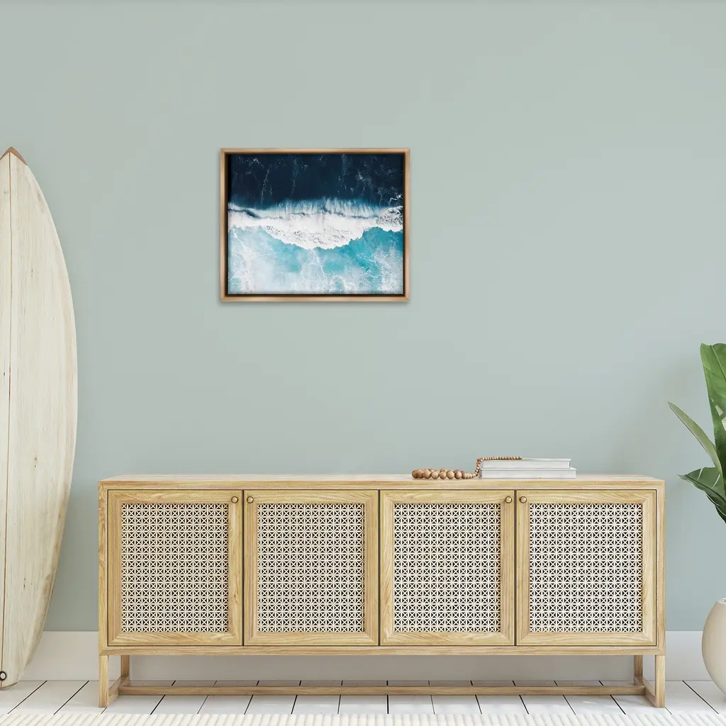 Elevate your home or office to the next level with Stupell Framed Floating Canvas Wall Art. Our premium hand-stretched canvas is mounted securely into a sturdy lightweight frame. The museum-style gap between the wrapped canvas and the box frame gives the illusion of floating artwork. Stupell Wall Art is made in the USA.Features: Dimensions: 21 x 1.7 x 17 Frame, 20 x 1.5 x 16 Canvas ArtFloating Frame Canvas Products are available in sizes 21"x17" and 31"x25". All Floating Frame Canvas Products have a 1.7" Depth.Wall Art is Ready to Hang with Hardware Free Hanging. No Installation required. For Easy Set Up Lean or Layer Artwork on Shelf or Against Wall. Artwork is Permently Fixed into the Frame.Our elevated 1.7" Thick Floating Frame is the perfect complement to our canvas style Wall Art. We use only the highest quality inks in house with industry leading printing solutions. Canvas is hand stretched over a durable wood foundation and then mounted securly into a Modern Box Frame. Made in the USA.Artwork Relates To: Nature, Sea, Water, Sea Waves, Coast, Shoreline, Tsunami, Ocean, Beach, TropicalDesign by Sisi and Seb