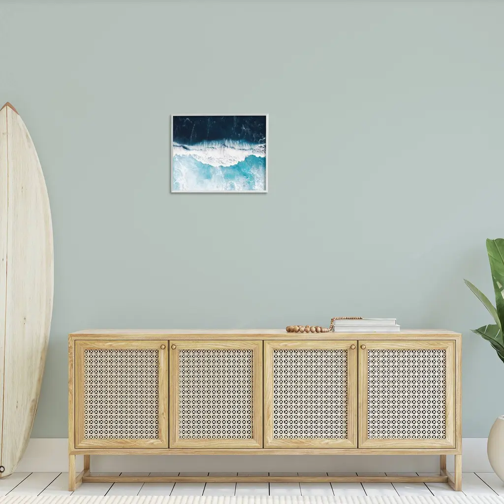 Add dimension to any room with our textured Framed Giclee Artwork. Our framed artwork is securely mounted into a 1.5-inch thick wood grain frame and ready to hang. Frames are available in three alluring styles: black, gray farmhouse and white. In addition, you should check out our oversized options if you want a statement piece. Stupell Wall Art is made in the USA.Features: Dimensions: 14 x 1.5 x 11 FramedFramed Giclee Products are available in the sizes 14"x11", 20"x16" or 30"x24". All Framed Giclee Products have a 1.5" Depth. Wall Art is Ready to Hang with Hardware Free Hanging. No installation required. For Easy Set Up Lean or Layer Artwork on Shelf or Against Wall.Our giclée prints are carefully mounted on a durable MDF backing, and then perfectly finished in a 1.5 inch thick woodgrain frame. Mounted frame colors include black, gray farmhouse and white. Made In USA.Artwork Relates To: Nature, Sea, Water, Sea Waves, Coast, Shoreline, Tsunami, Ocean, Beach, TropicalDesign by Sisi and Seb